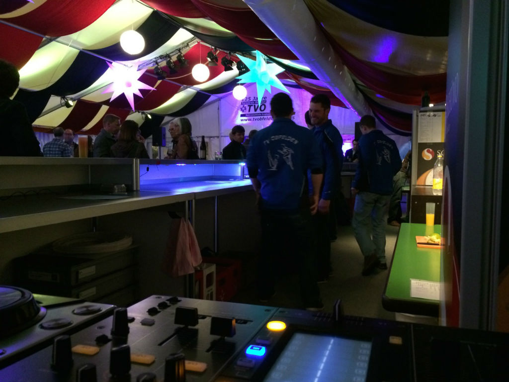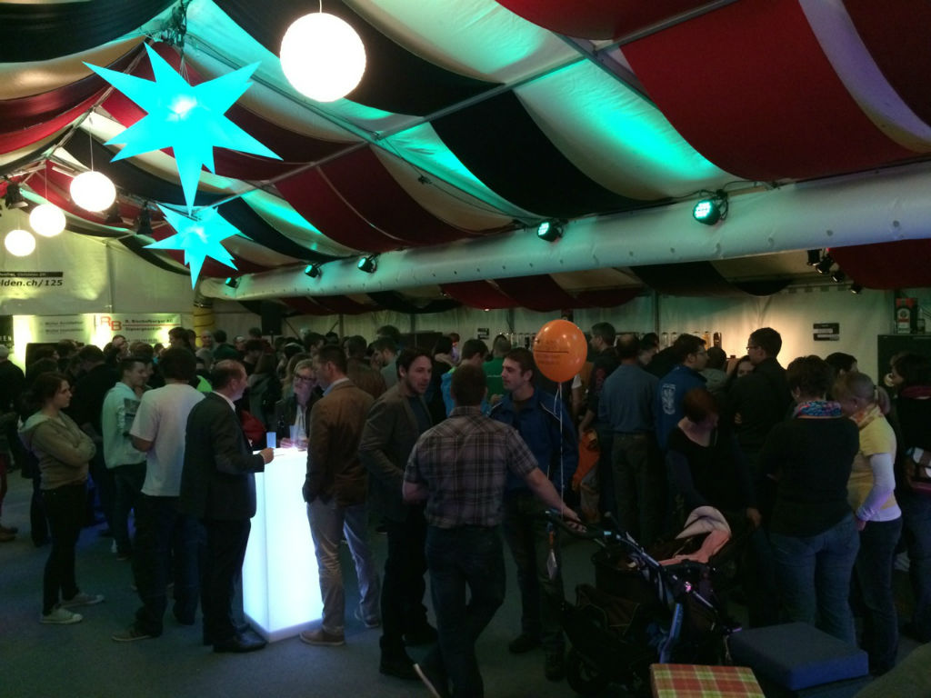 Das etwas einfarbige, weisse Festzelt wurde mit Einsätzen am Montag, Dienstag und Mittwoch in eine grosse Bar mit Ambiente verwandelt. Mit Hilfe der „Chränzli-Tüchern“, farbwechselnden Bar-Tischen und Sternen zeigte sich das Zelt sehr einladend. Jeweils nach Messeschluss um 22 Uhr füllte sich die Bar schnell.