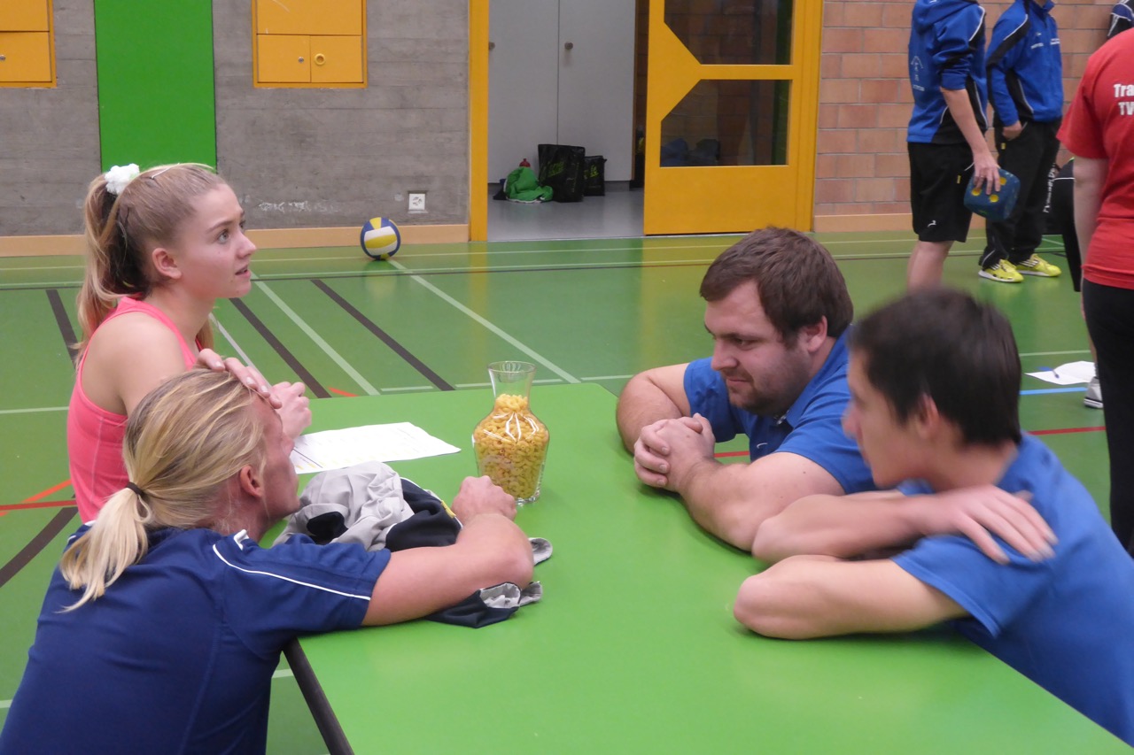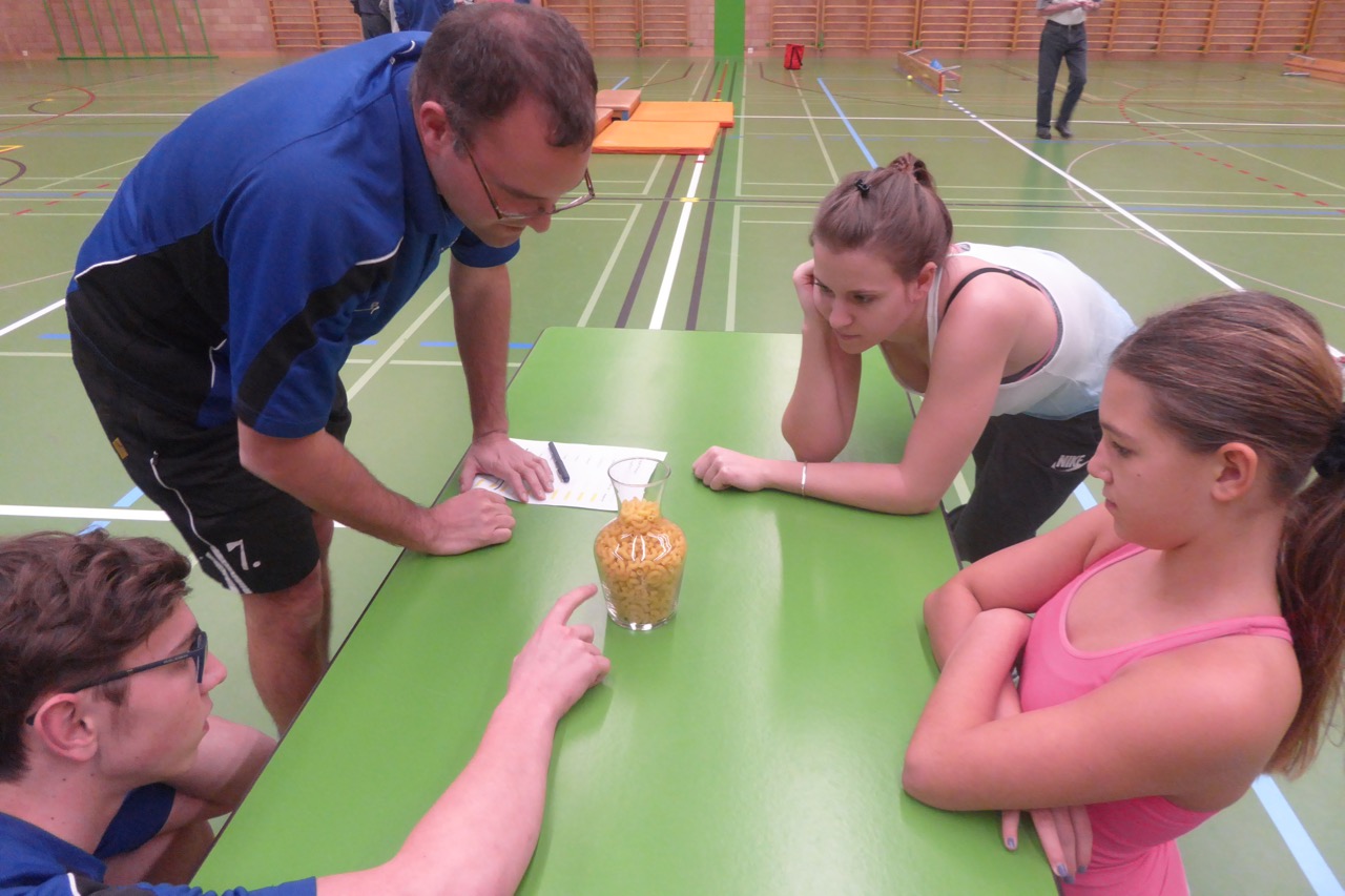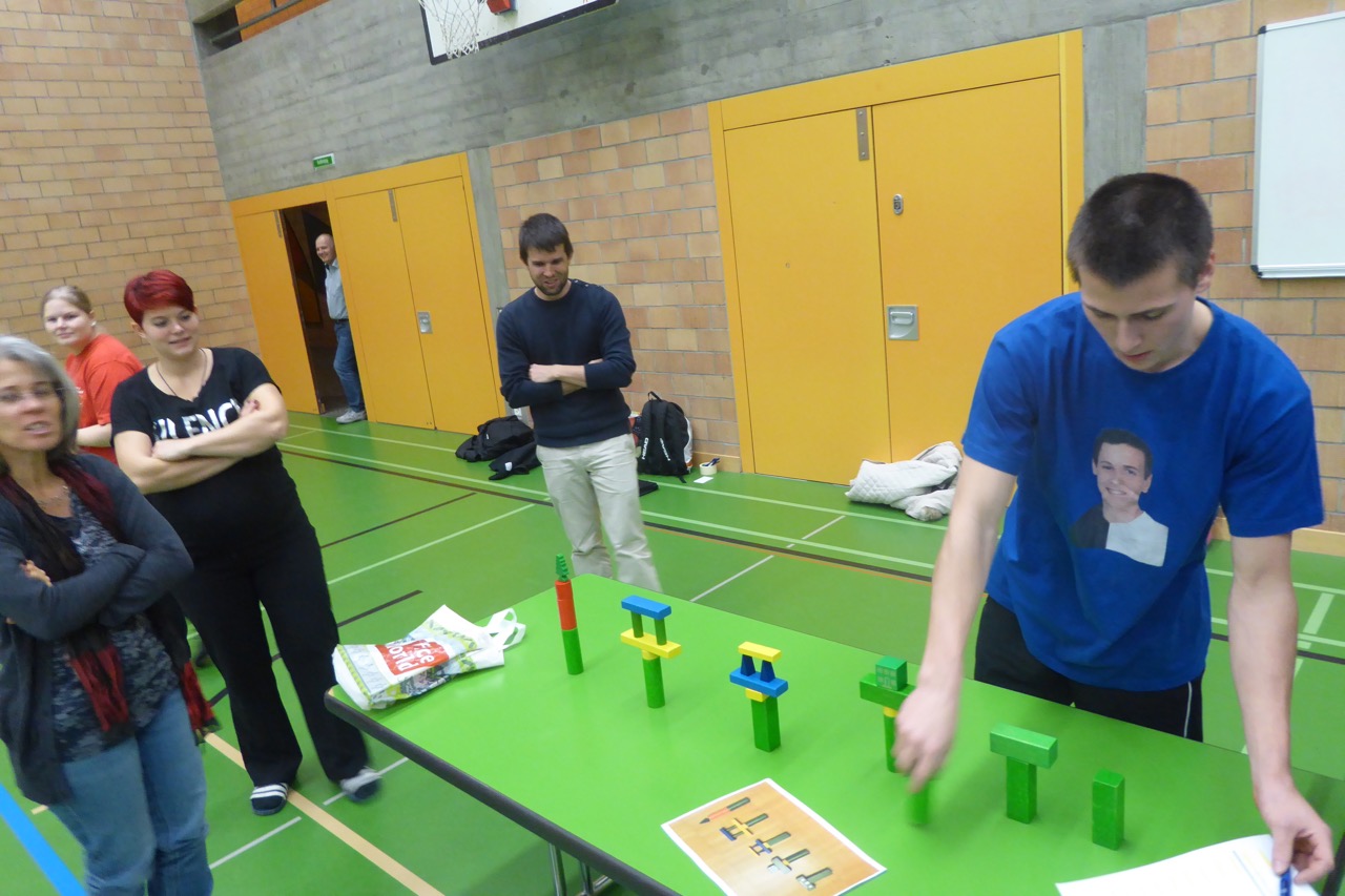 Die Dosen fürs Dosenlaufen waren allerdings nicht ganz allen gewachsen. Mangels intakter Dosen musste das Spiel bald aufgegeben werden. Gekämpft wurde dieses Jahr nicht nur um die vordersten 3 Plätze, sondern auch um die beiden letzten, den diese übernahmen in diesem Jahr den Abwasch beim Nachtessen. So musste beim Emoticons-Film-Quiz geraten, beim Kegeln genau gezielt oder bei den Klötzchen die richtige Taktik gewählt werden.