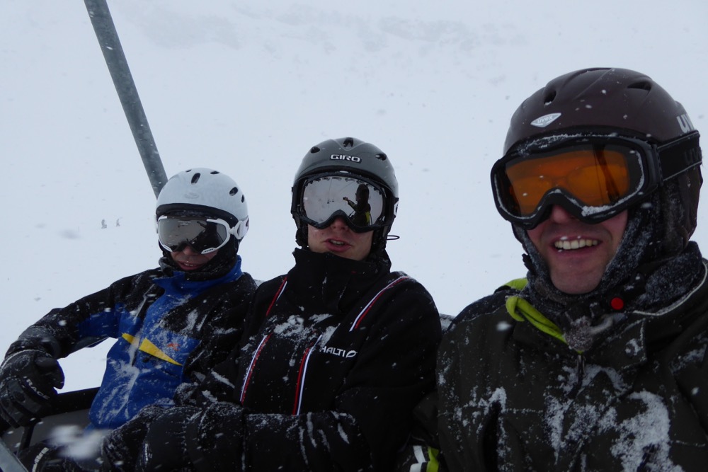 Die Ankunft in Engelberg bot gleich zwei Überraschungen. Erstens stand definitiv fest, dass dieser Winter doch noch weiss werden kann und zweitens begrüsste uns die brandneue Gondelbahn, die alle bequem und ohne Wartezeit auf die Gipfel brachte. Während dann die einen bereits ohne die Skis anzulegen vor dem Wetter kapitulierten und sich ein lauschiges Plätzchen in einem Restaurant suchten, wagten andere eine mutige Fahrt hinunter. Nachdem eine einfache Abfahrt dank einer Armlänge Sicht, Schneeverwehungen und einer Buckelpiste per excellence fast eine Stunde dauerte, gesellte sich auch der Grossteil der „Skifahrer“ zur Restaurantgruppe.
