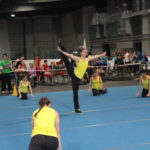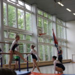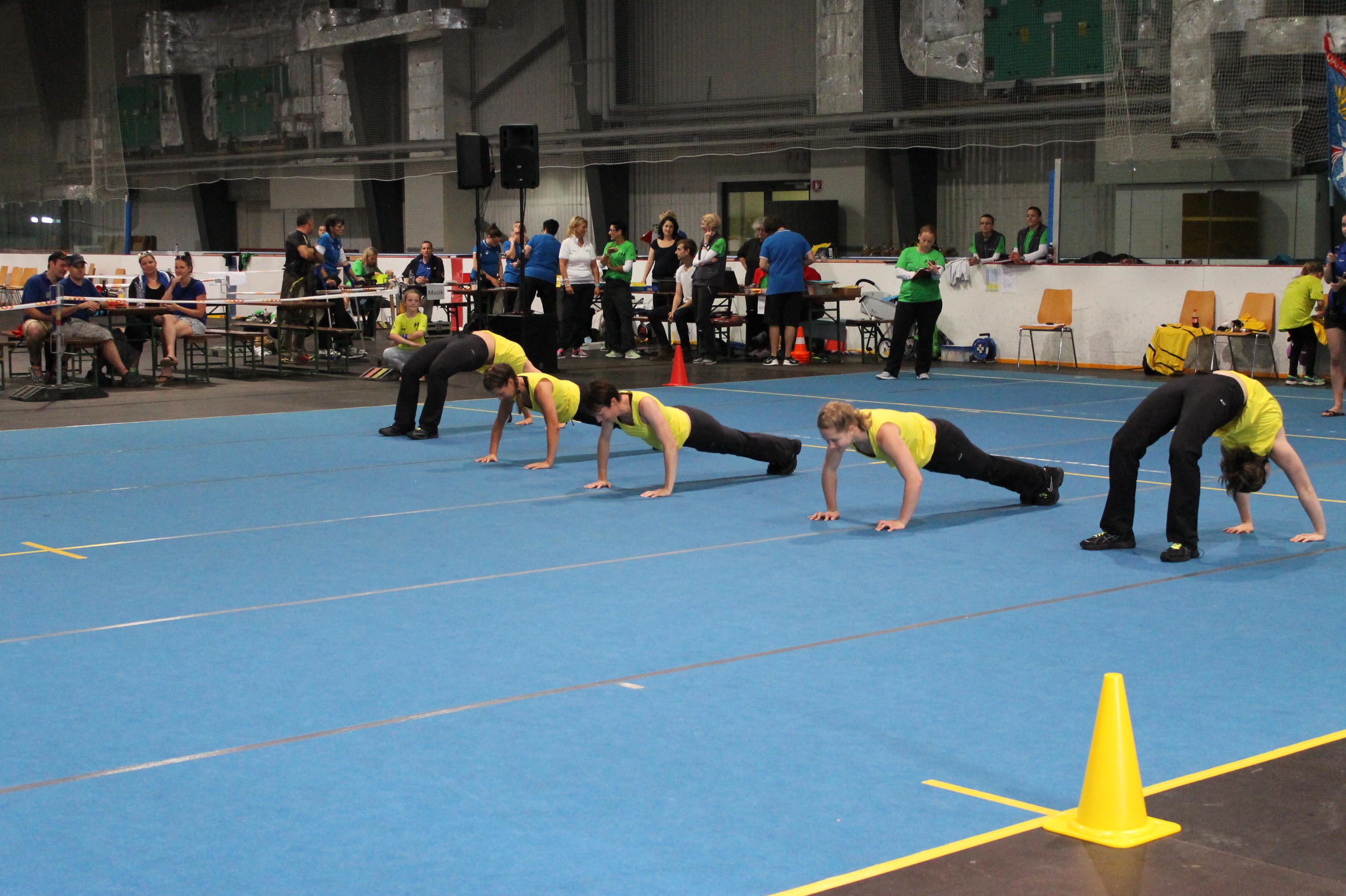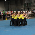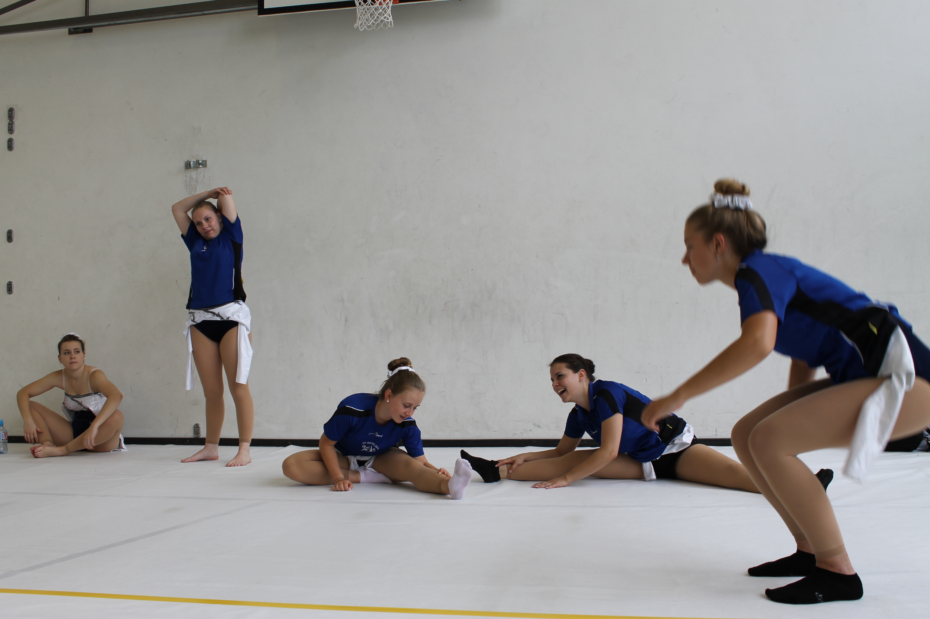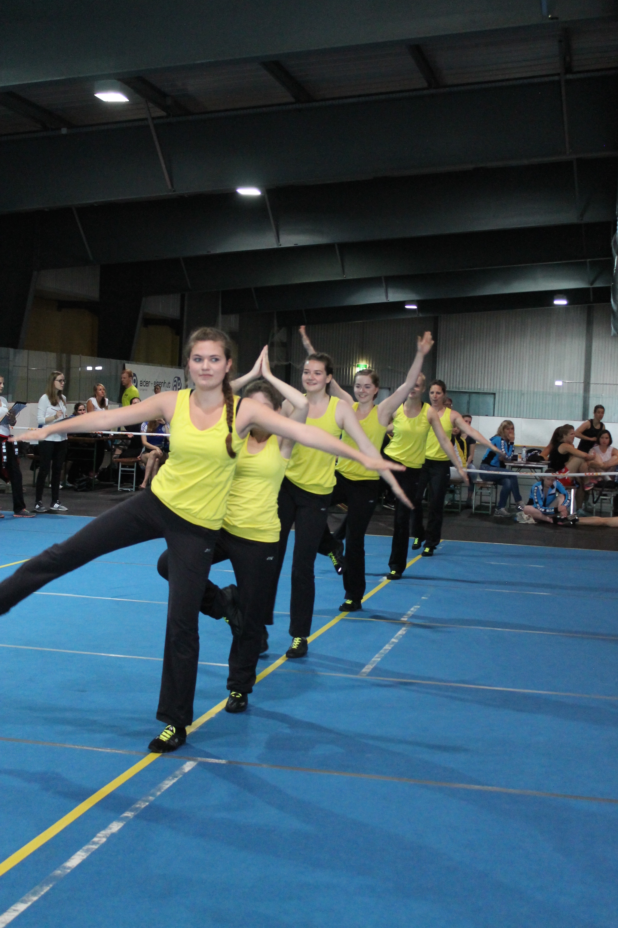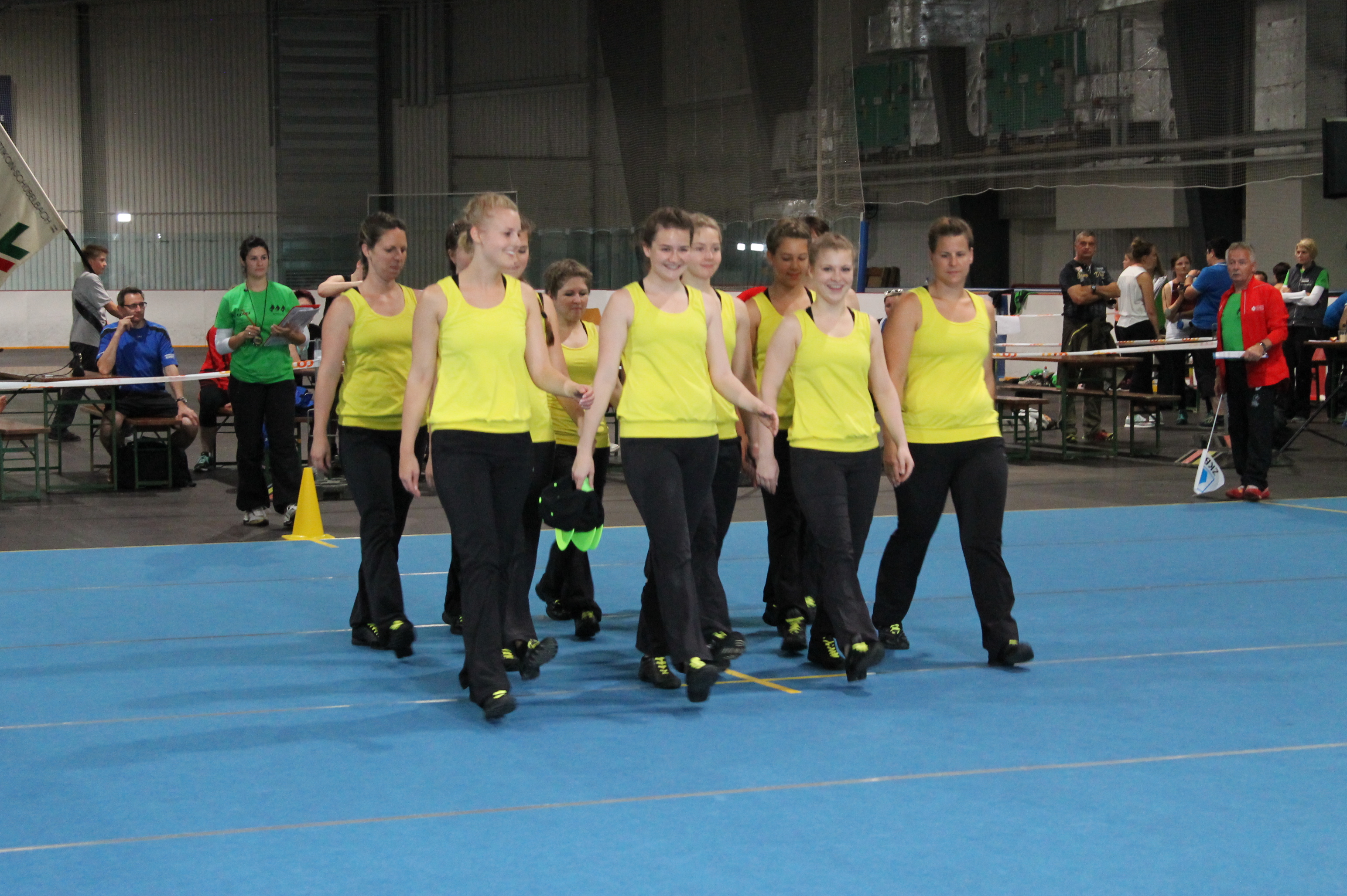 Die Fachtestler der Damenriege eröffneten den Wettkampf um 9:18 Uhr. Sie hatten Glück mit dem Wetter, die Wolken hatten sich zurückgezogen und sogar ein paar Sonnenstrahlen kamen zum Vorschein.  Begonnen haben die Damen mit dem Gobaspiel. Im Vergleich zum Training konnten sie sich steigern und waren sichtlich zufrieden mit Ihrer Leistung. Als nächstes stand das Beachball Spiel auf dem Programm der Damenriege. Leider konnten sie den Erfolg vom ersten Spiel nicht mitnehmen. Trotzdem konnten sie auch diesmal zufrieden sein und sie beenden ihren Wettkampf mit einer Note von 8.41. Weiter ging es mit den Turnerinnen am Stufenbarren. Da sie die ersten waren in dieser Disziplin, bemerkten sie auch die Mängel an den Barren. Schnell wurden diese repariert und sie konnten mit dem Wettkampf starten. Mit einer sehr guten Leistung und fehlerfreien Übungen wurden sie schlussendlich mit der fünftbesten Note in dieser Disziplin, einer 9.10, belohnt. Das Team Aerobic beendete ihren Wettkampf in der Curlinghalle. Auch sie konnten ihren Wettkampf mit einem Lächeln beenden. Trotz kleinen Fehlern wurden sie von den Zuschauern mit einem riesigen Applaus verabschiedet und erhielten für den Auftritt eine 8.55.