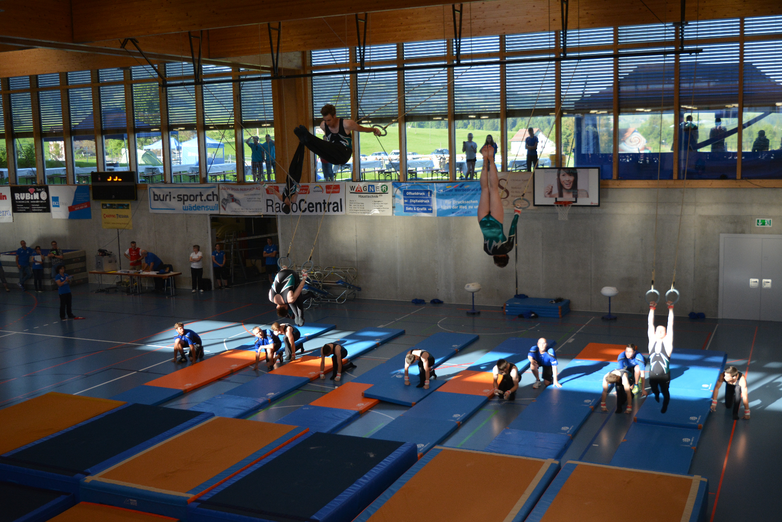 Mit unserem Schaukelringprogramm durften wir um 08:00 Uhr die Regionenmeisterschaften in Schönenberg eröffnen. Dies taten wir mit einer überaus gelungenen Vorführung. Wir mussten keine groben Fehler in Kauf nehmen und konnten unser Können der Morgensonne präsentieren. Nicht nur die Morgensonne strahlte sondern auch unsere Augen als wir die Note 9.26 lesen durften. Mit dieser Wertung grüssten wir nach Halbzeit von der Klassementen Spitze. Nun galt es am Nachmittag mit einer zweiten sauberen Leistung diesen Platz zu verteidigen. Dieses Vorhaben konnte grössten Teils umgesetzt werden. Für die zweite Aufführung resultierte eine 9.15 der Rest ist Geschichte.