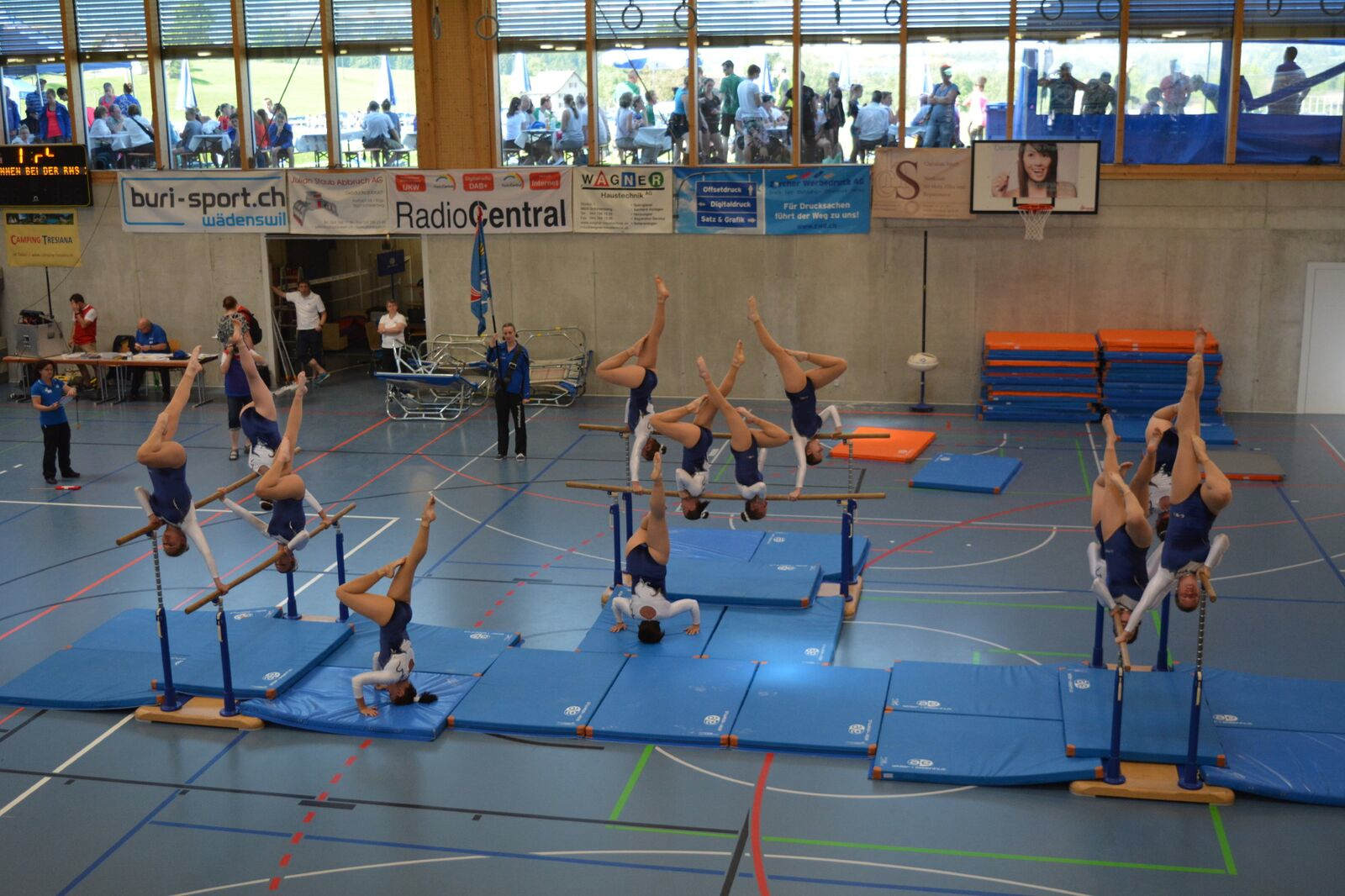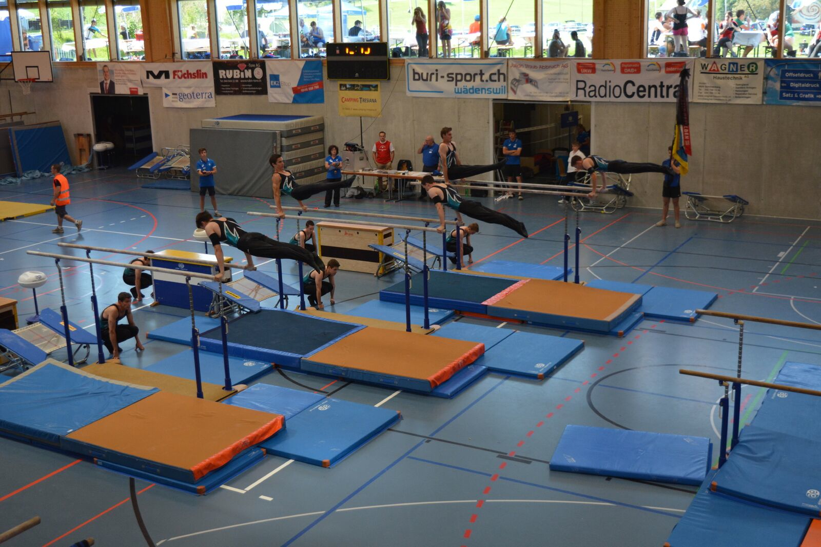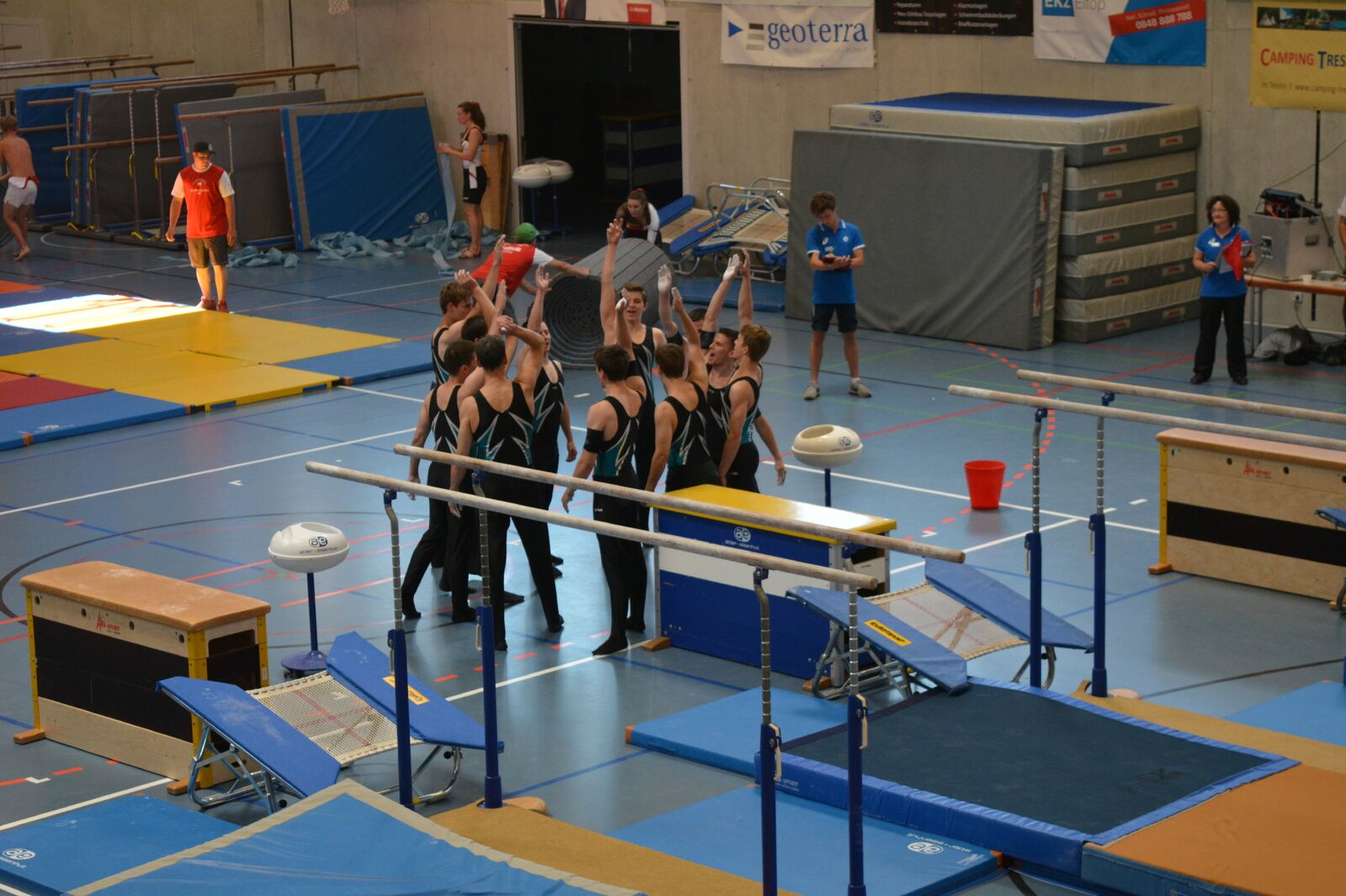 Der Schulstufenbarren startete mit ein wenig Verspätung mit der Aufführung. Da wir im Vorfeld schon ein Ziel hatten und wieder Regionenmeister werden wollten war der Druck ein wenig höher als sonst. Aber wir meisterten dies mit bravour und konnten mit der Synchronität und Ausführung punkten. Am Schluss wurden wir mit der Note 9.45 belohnt und hatten somit die Latte hoch gestellt, jetzt hiess es aber nicht auf den Lorbeeren ausruhen, denn am Nachmittag mussten wir, wie schon erwähnt, die Übung nochmals zeigen, da das Gesamttotal der beiden Noten zählte. Nach einer längeren Pause und extremer Hitze durften wir am Nachmittag die Aufführung nochmals wiederholen und konnten uns sogar um 0.05 Punkte steigern und erhielten eine Note von 9.50 für diese Darbietung.