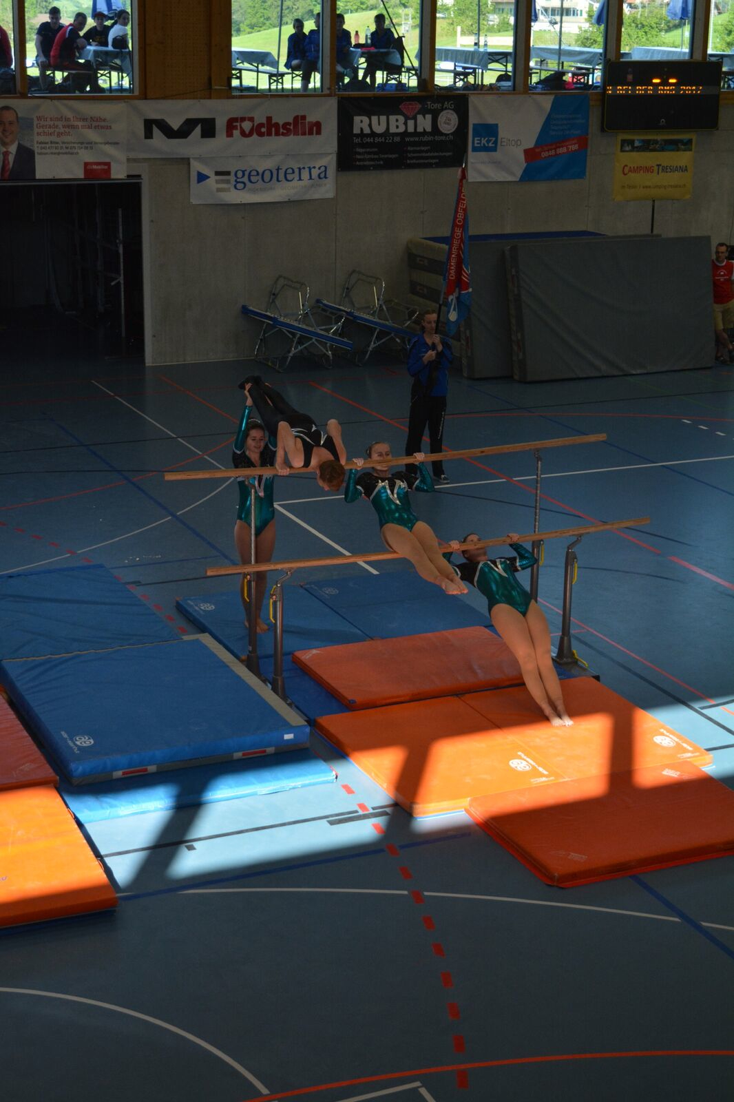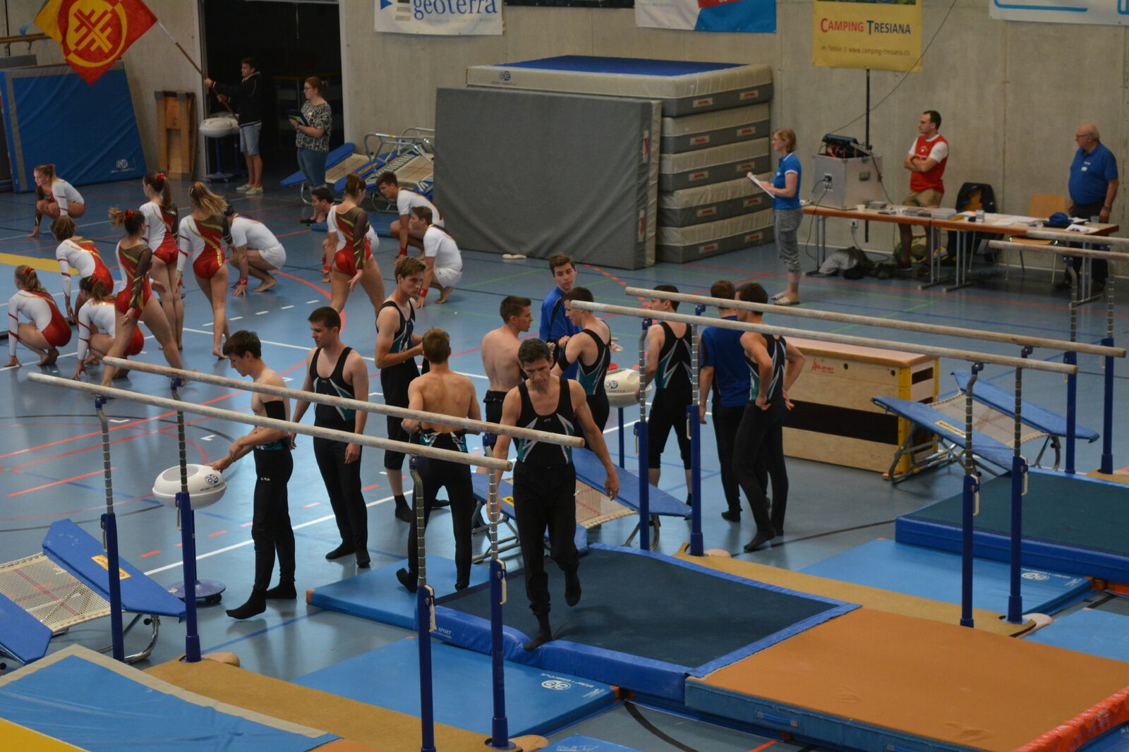 Neu mit den Geräten Barren und Schulstufenbarren und nicht mehr Sprung kombiniert mit dem Schulstufenbarren. Mit zwei sauberen praktisch identischen Vorführungen ohne grosse Fehler erturnten wir uns ebenso fast identische Noten. Im ersten Durchgang eine 9.26 und im zweiten eine 9.27. Sehr zur Freude der beiden Leiter Nathalie und Stephan Niederhäuser wurde die Teilnote für die Programmzusammenstellung mit der Höchstnote belohnt.