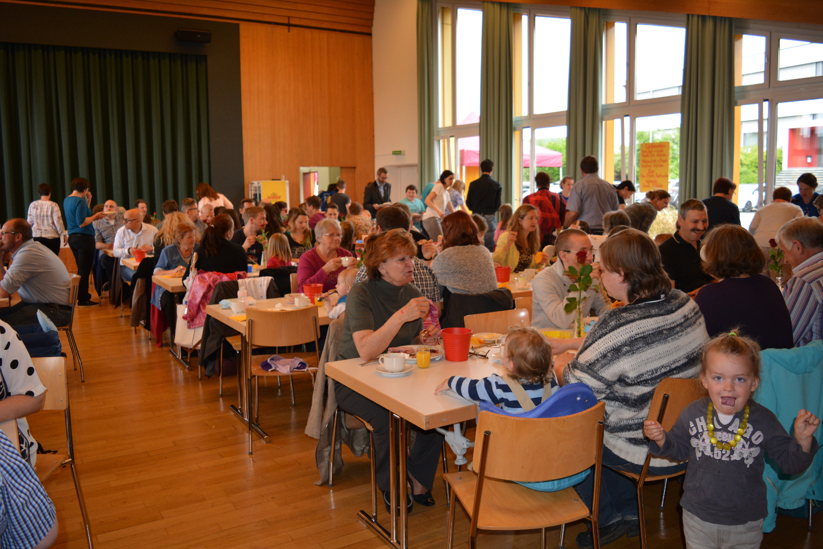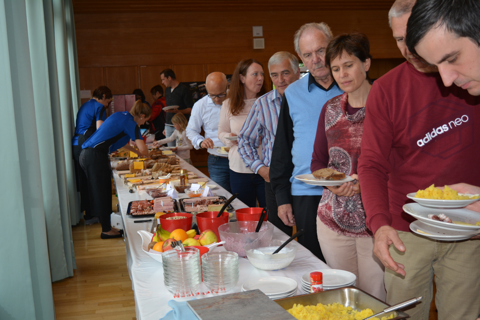 Da schon nach ca. 1h die warmen Gipfeli weg waren, mussten wir notfallmässig in den Dorfmärt in Obfelden fahren um Nachschub zu kaufen. Die Besucherinnen und Besucher wurden mit Müesli, Käse-, Fleischplatten, Spiegeleier sowie feiner Rösti verköstigt und danach von einem reichhaltigen Dessertbuffet verwöhnt.