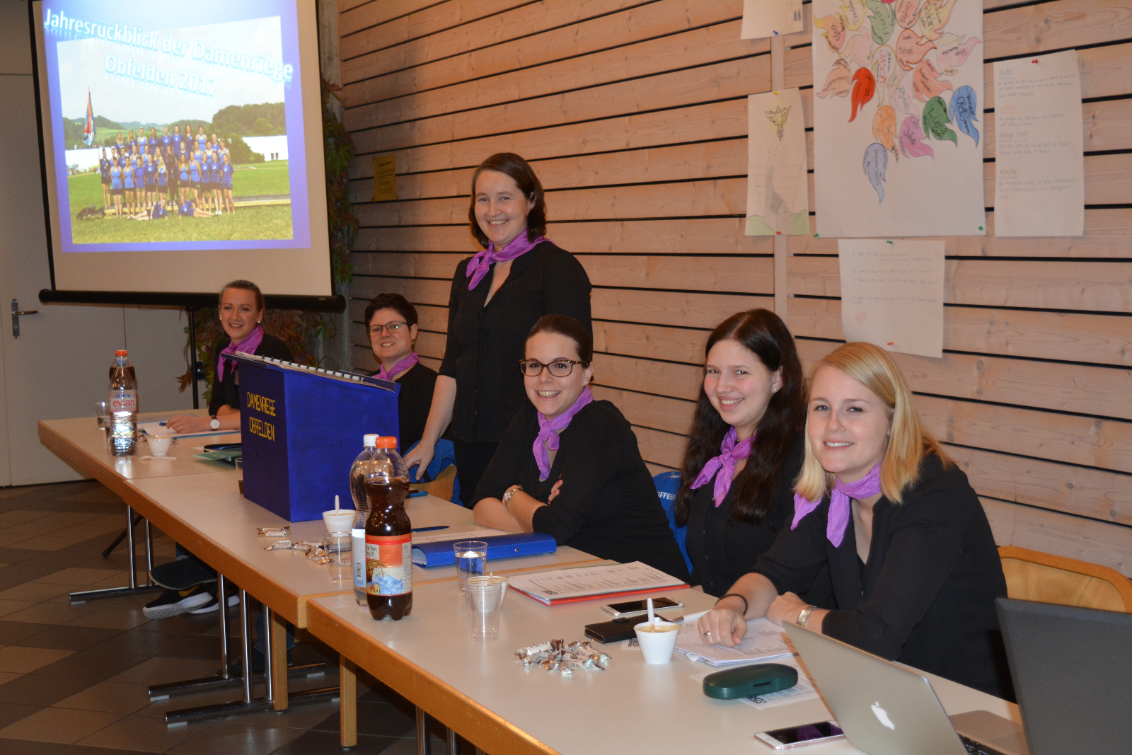 Begrüsst werden auch die 13 Ehrenmitglieder. Nach dem Jahresbericht mit Diashow durften wir 4 neue Aktivmitglieder und 4 neue Jungturnerinnen in der Damenriege willkommen heissen.