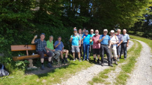 Per Zug und Bus fuhren 16 Turnveteranen, bei herrlichem Sommerwetter, via St. Gallen – Heiden nach St. Anton. Im Kafi Anton konnten wir den sehnlichst erwarteten Kaffee mit Gipfeli geniessen. Von hier aus hat man wirklich eine prächtige Aussicht ins St. Galler-Rheintal, ins Vorarlbergische, Bündner Alpen und insbesondere zum Alpstein mit den bekannten Grössen Hoher Kasten, Kronberg und Säntis.