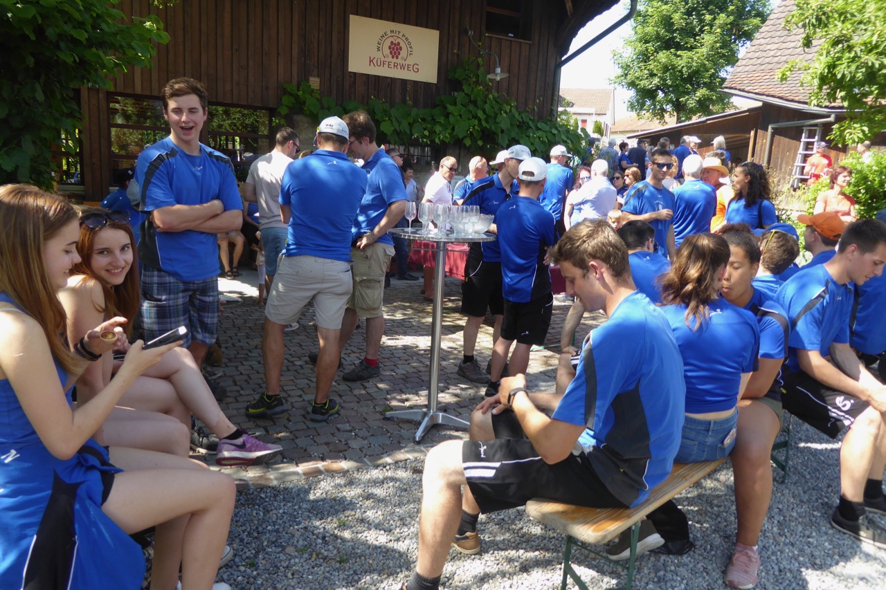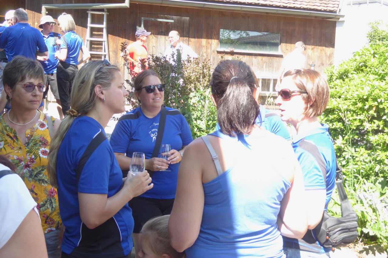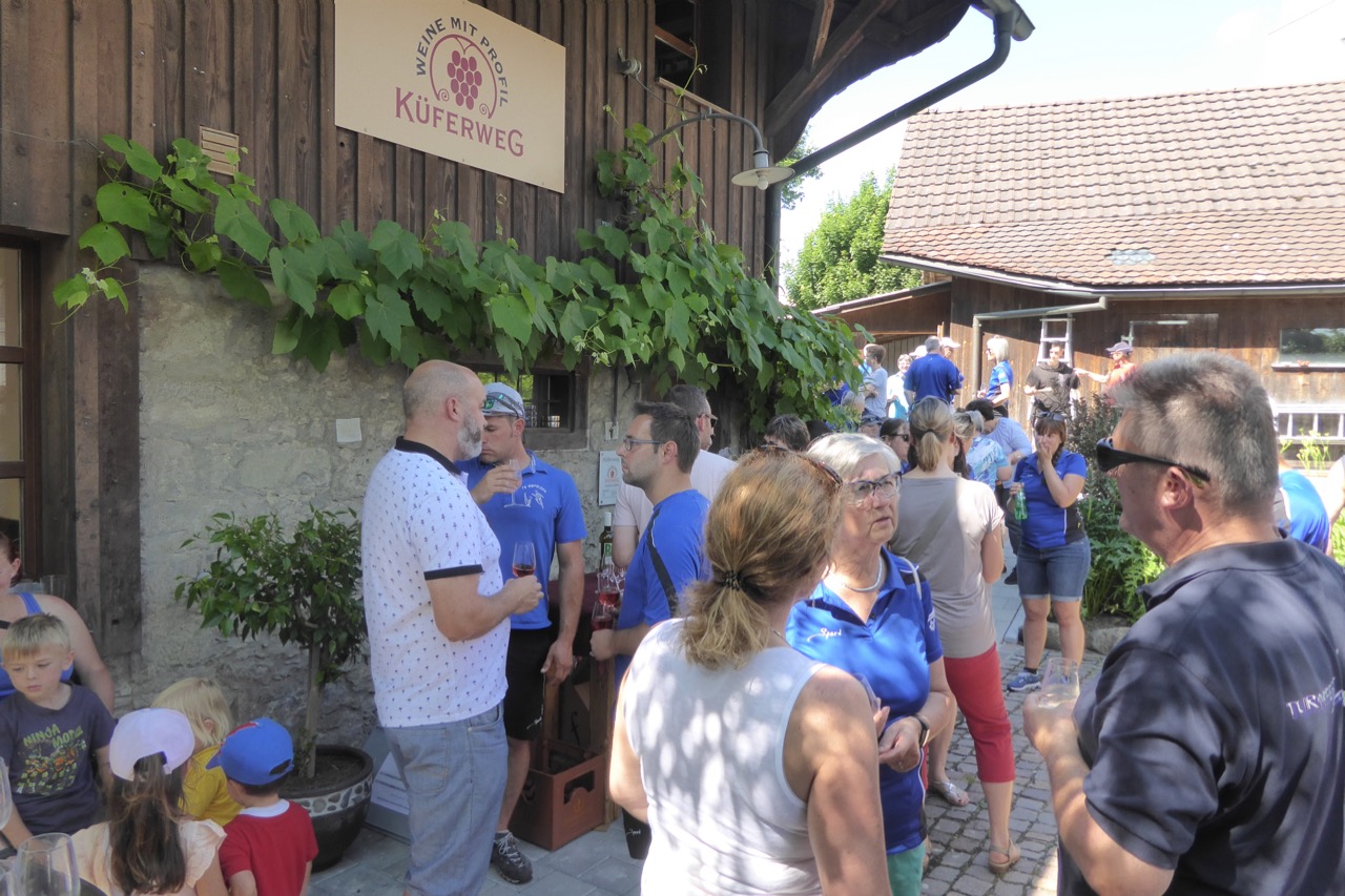 Am Küferweg erwartete uns ein Apéro mit feinen Weinen, Orangensaft und Mineral. Dave liess die 3 Applaus-Stufen vom Chränzli bei seiner kurzen Rede aufflammen. So gehörte die oberste Stufe natürlich dem Vereinsrekord.