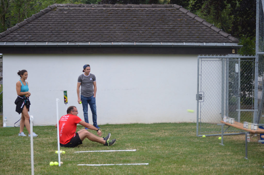 Zum Start des diesjährigen Sommerprogramms fand zum zweiten Mal der Biathlon statt. Eine kleine Gruppe an wackeren TV’lern wagte sich auf die Joggingrunden und bewies ihre Genauigkeit beim Zielwerfen mit Tennisbällen.
