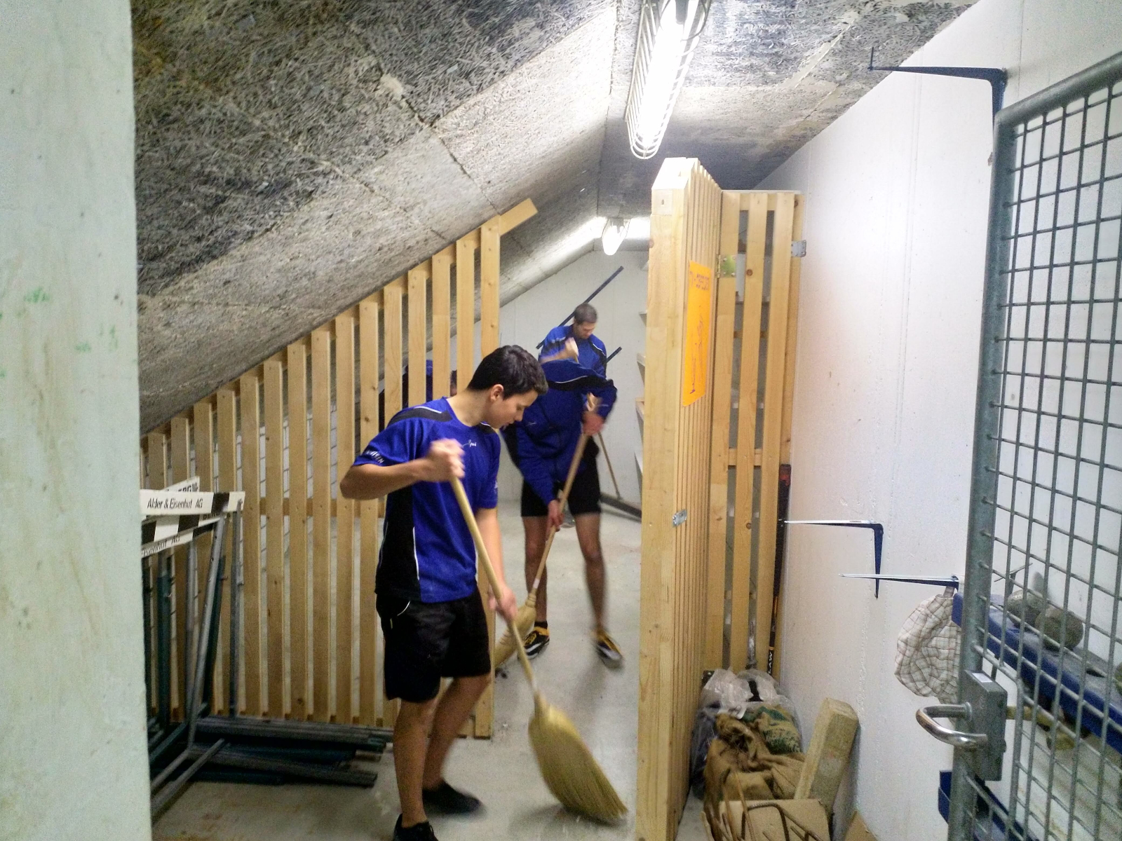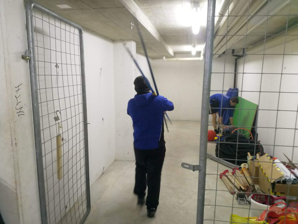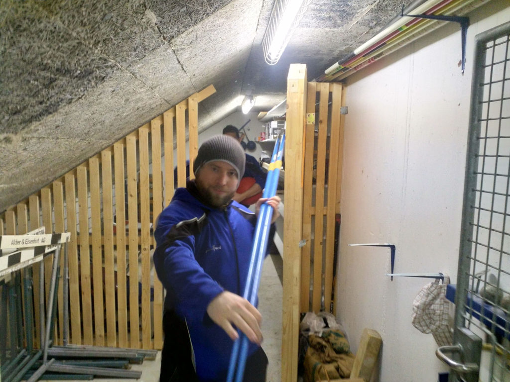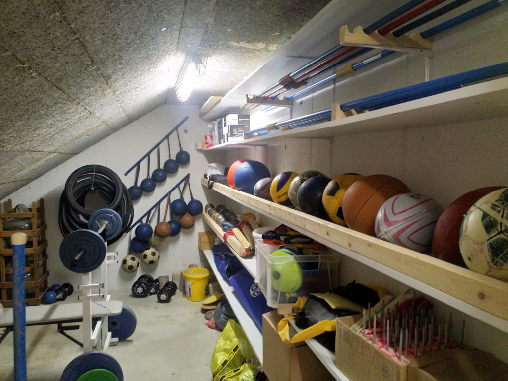 Die Riegen der Turnfamilie Obfelden erfreuen sich konstant hohen Mitgliederzahlen. Viele Leute bedeuten viel Material, das für die Trainings der verschiedenen Disziplinen benötigt wird. Unihockeyschläger, diverse Elemente für Fachtest-Disziplinen, Gewichte für Krafttrainings, Schleuderbälle oder Speere sind nur einige der Materialien, die im Aussengeräteraum im Zendenfrei lagern. Von der Jugendriege, über die Meitliriege, die Damenriege, die Männerriege, bis zum TV – fast alle Riegen lagern Material.