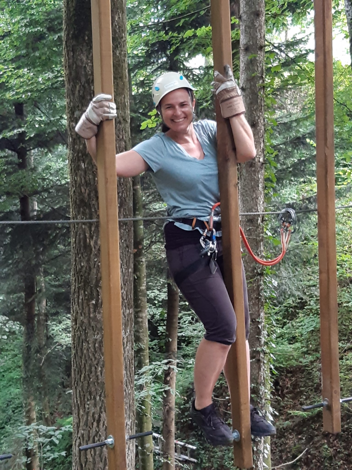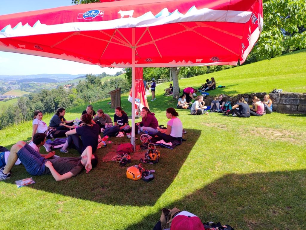 Kaum angekommen (und sogar bei trockenem Wetter) wurden einige Instruktionen mitgeteilt und schon bald sah man das eine oder andere Äffchen im Park umherhangen oder –schwingen. Das Mittagessen wurde bei schönem, sommerlichem Wetter genossen, wobei sogar ein Gasgrill benutzt werden konnte. Gestärkt ging es für den grössten Teil in die zweite Hälfte. Ein toller Mix aus Höhenmeter, Geschicklichkeit, Ausdauer und Kraft konnte im ganzen Park genossen werden!
