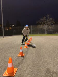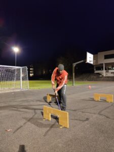 Nach einigen Wochen des Herantastens wagte sich die Aktivriege vergangenen Freitag schliesslich sogar wieder an eine Jahresmeisterschaft heran. Ein Unihockeyparcours war angesagt, quer über den gesamten Zendenfrei-Hartplatz. Präzision, eine feine Stocktechnik, Geschick und natürlich Geschwindigkeit waren gefragt. Bei Wind und eisigen Temperaturen wollten aber sowieso alle die Sache schnell hinter sich bringen. Die Corona-Pause ist Manuel Bulliard offenbar am besten bekommen, er absolvierte den Parcours am schnellsten. Auf Rang zwei und drei folgten Neo-Vorstandsmitglied Emanuel Foster und Rückkehrer Philipp Grimmer, der mit seiner Anwesenheit dafür sorgte, dass er auch im kommenden Jahr auf der Appell-Liste erscheint 🙂