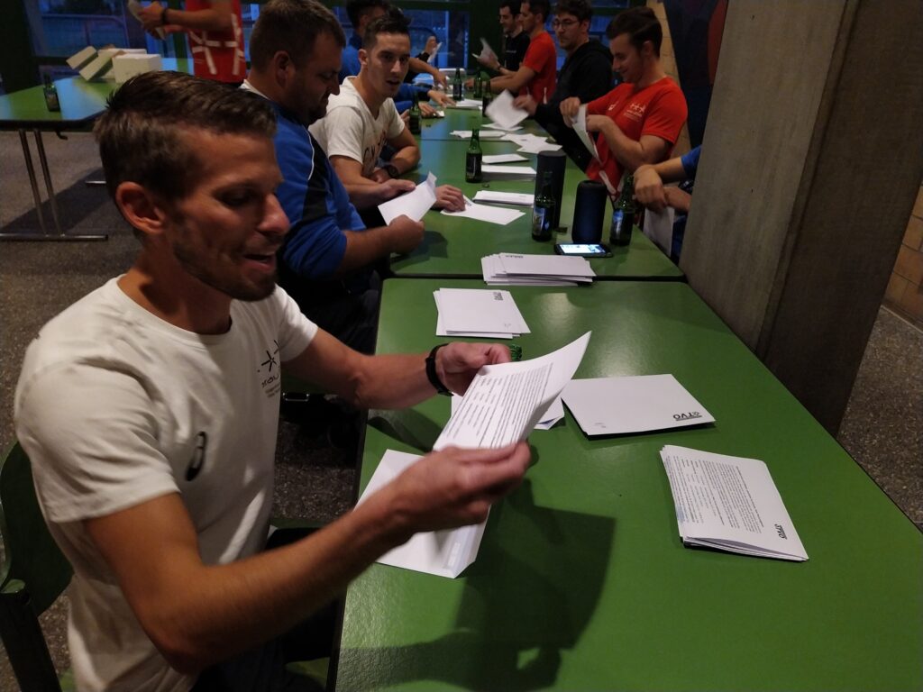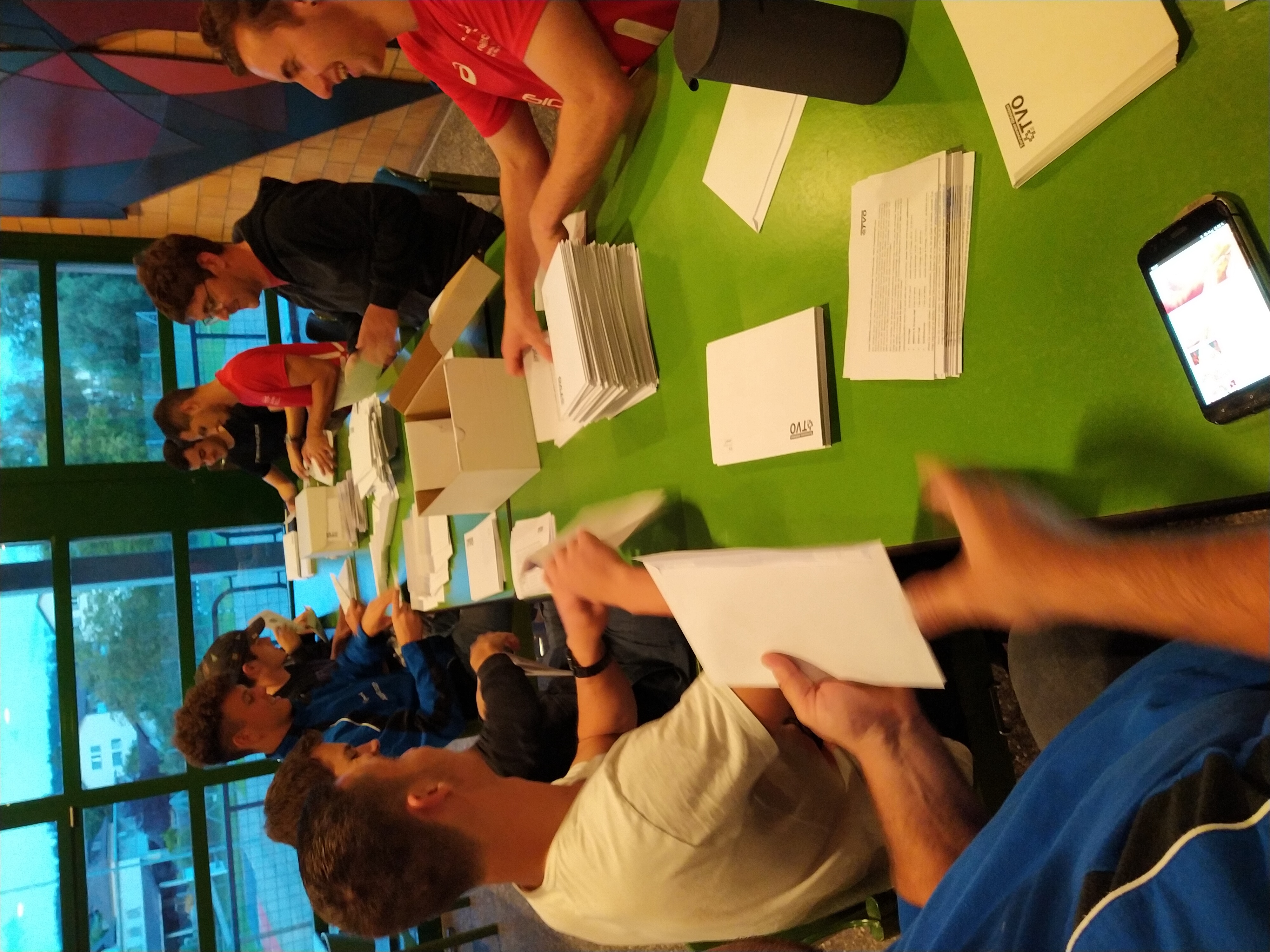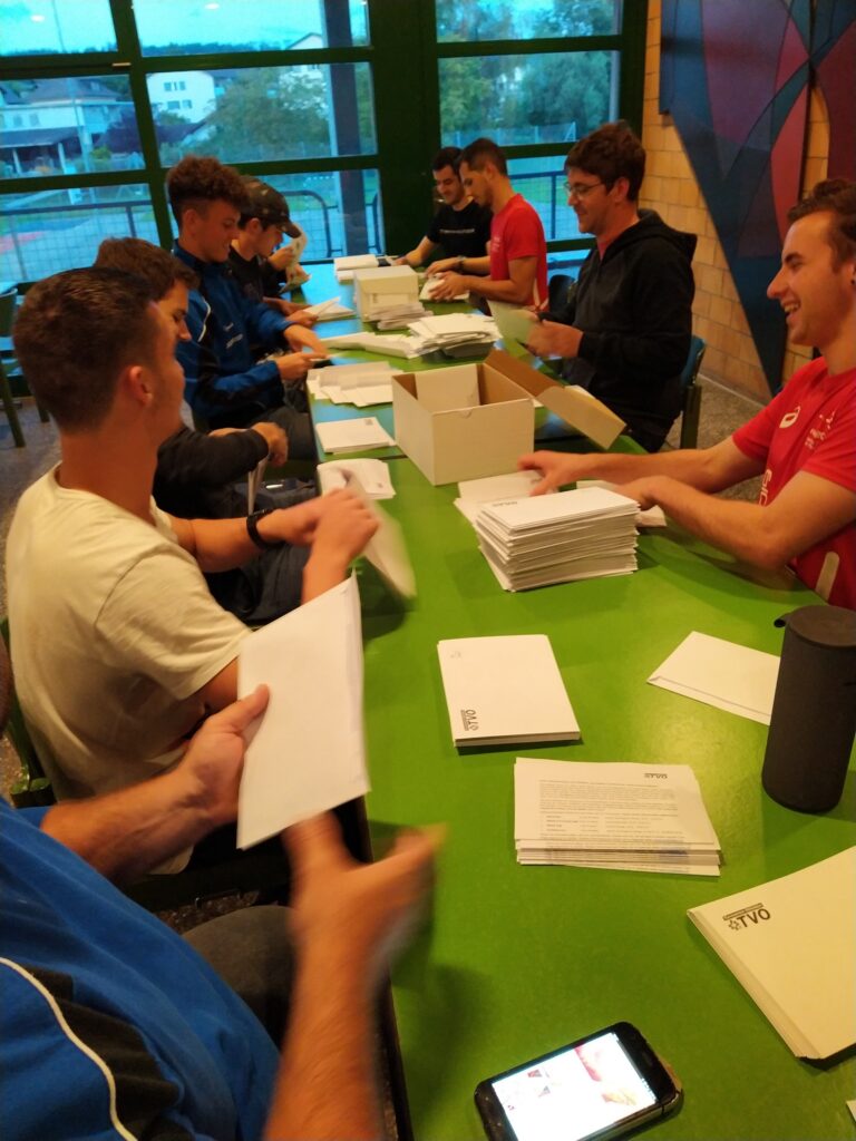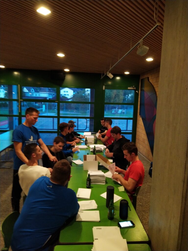 Bildlegende: Couvertieren statt trainieren: Die TV-Mitglieder beim Einpacken der Briefe.