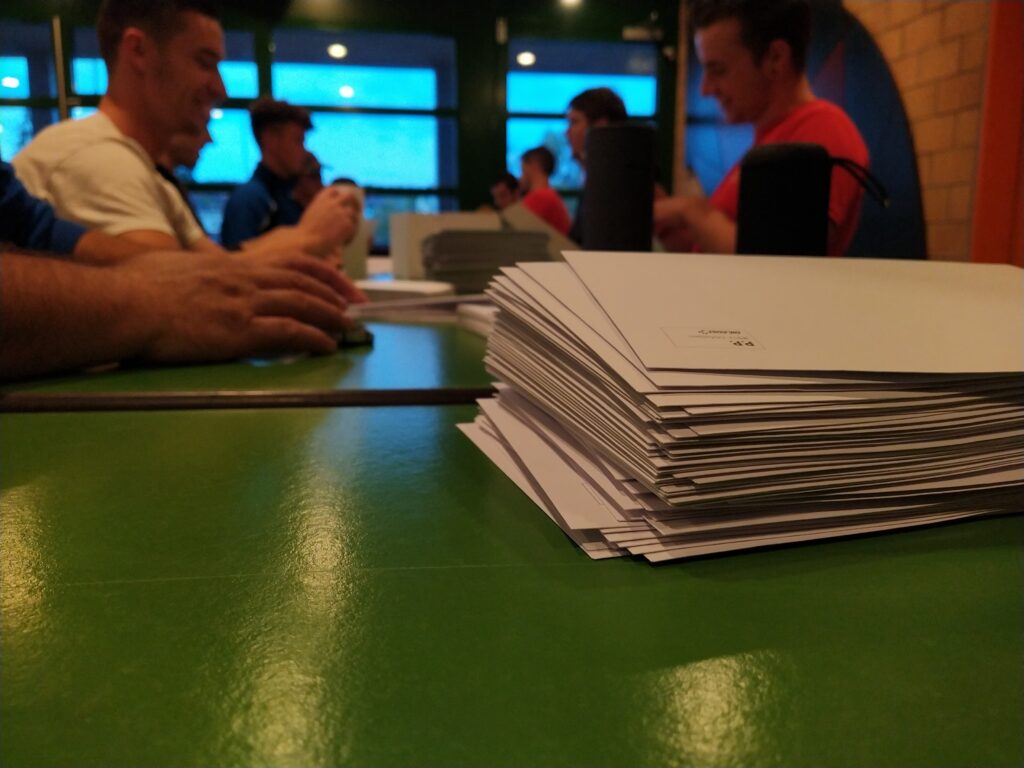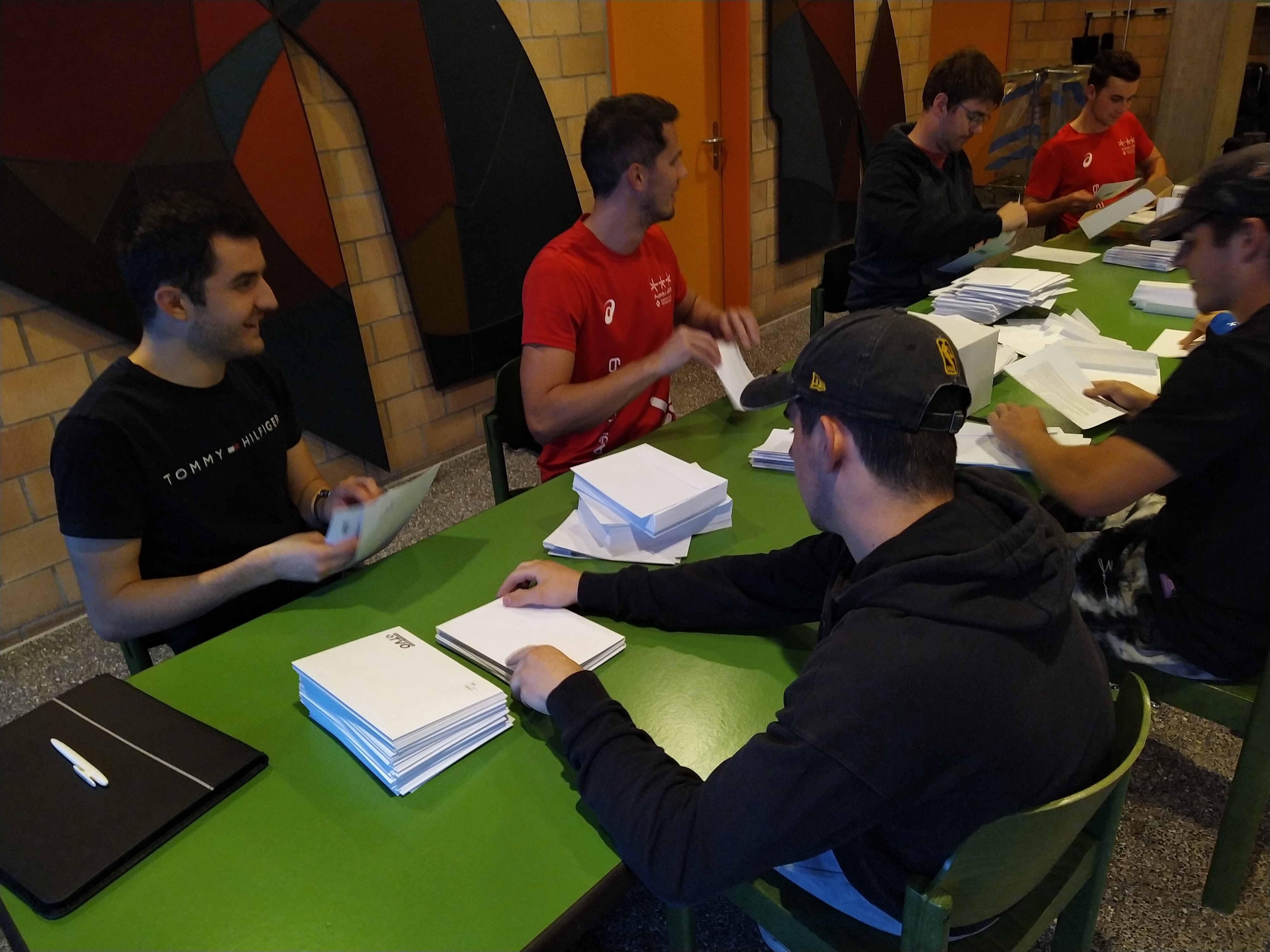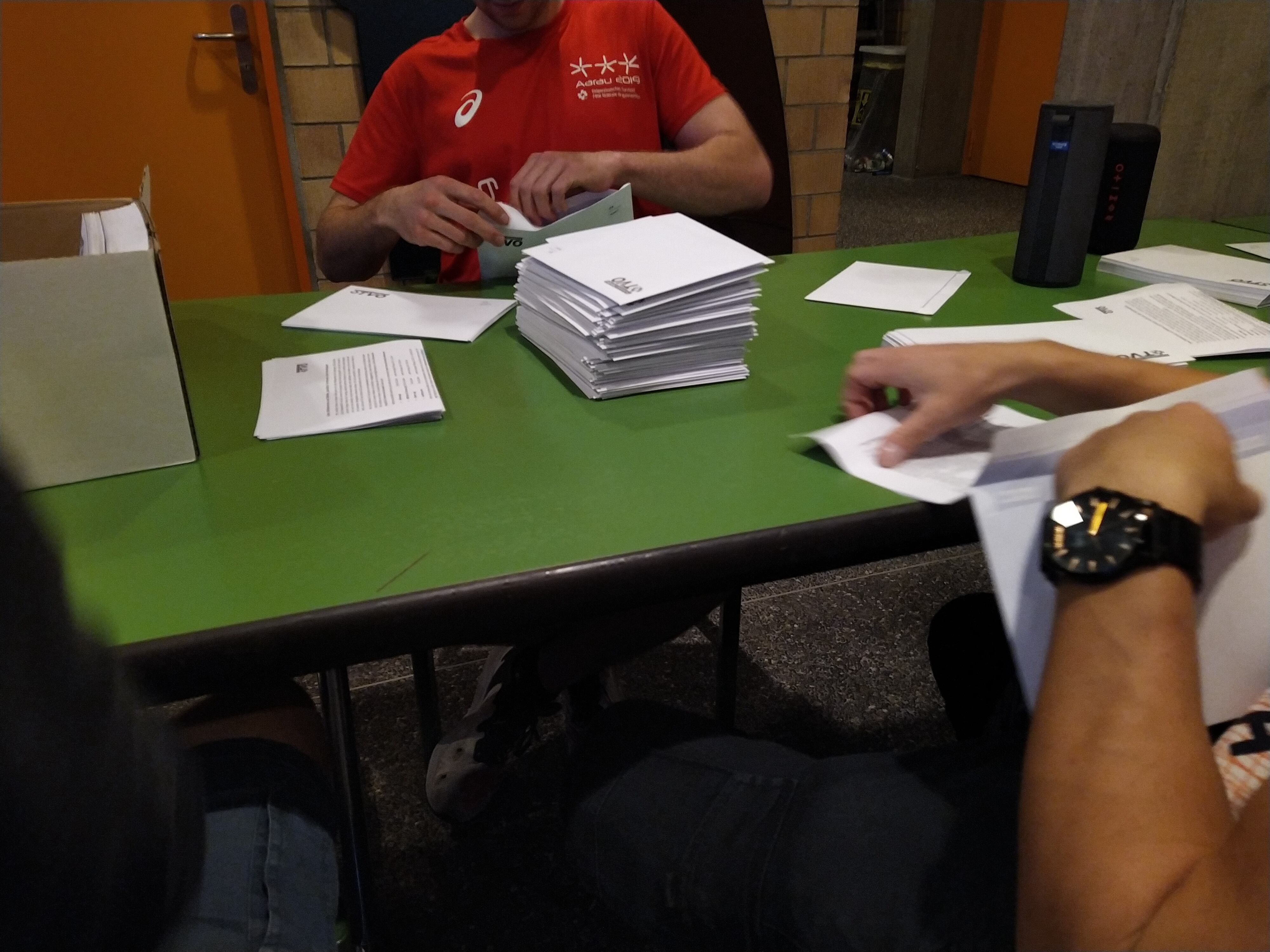 Bildlegende: Couvertieren statt trainieren: Die TV-Mitglieder beim Einpacken der Briefe.