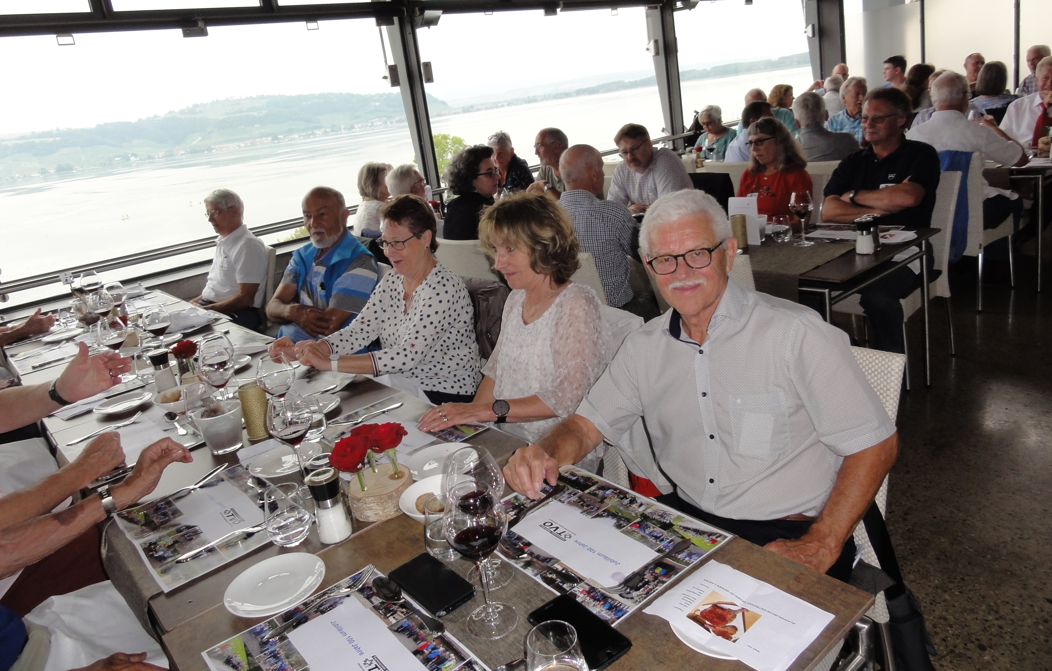 Vor dem Mittagessen im schönen Hotelsaal begrüsste uns unser Präsident Paul Stierli. Er bedankte sich bei den vielen Sponsoren für die finanzielle Unterstützung. Speziell begrüsste er den Gemeindepräsident Stephan Hinners, den Präsidenten des Turnvereins Lukas Felder und den Präsidenten der Männerriege Walter Nussbaumer. Das Mittagessen mit Blattsalat, Fleisch oder Fisch und Dessert war sehr gut. Nur die Preise für Wein und Grappa waren eher im höheren Bereich.
