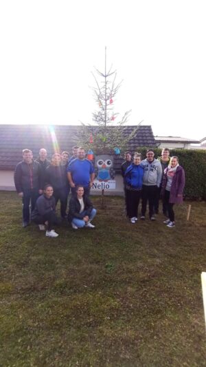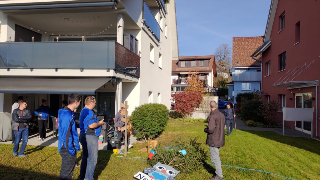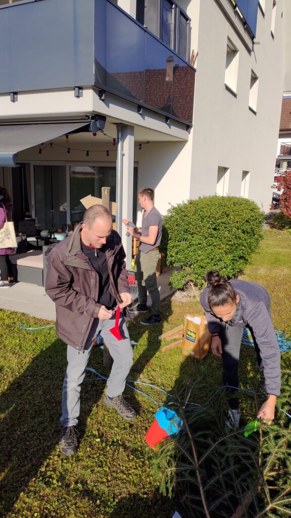 Das Ziel von der Truppe, einen kleinen Baum aufzustellen und dann gemütlich mit dem frischen Elternpaar darauf anzustossen.