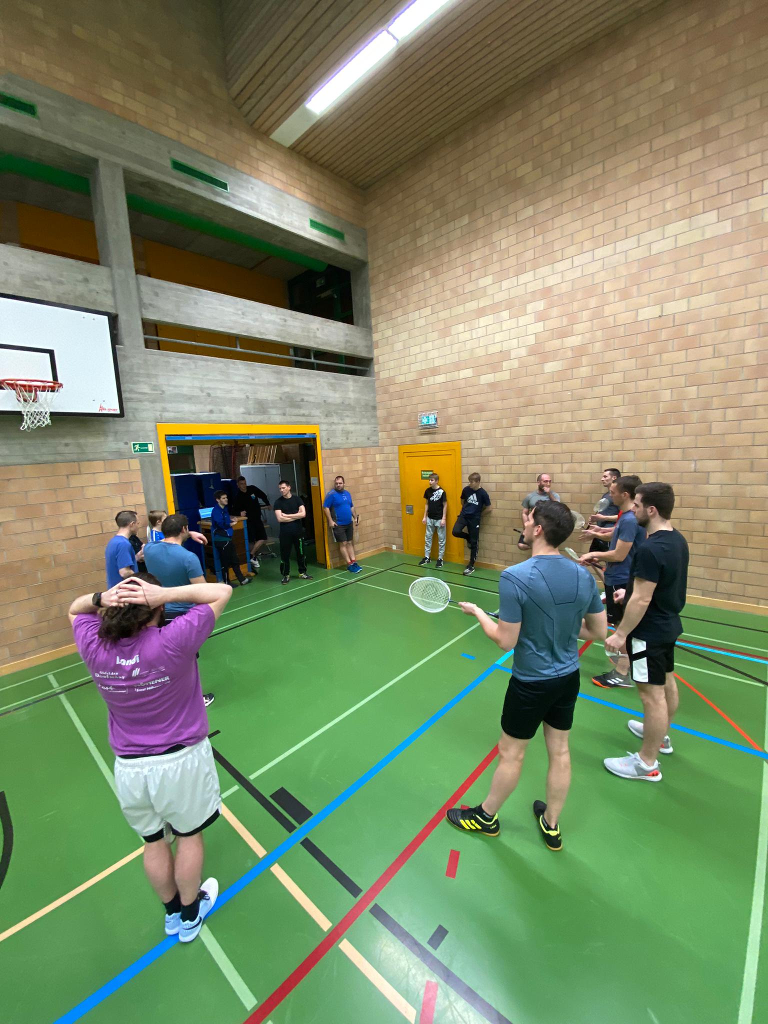 Nach den Sportferien hiess es: Masken weg! Gleich 20 Turner erschienen zum ersten Training und duellierten sich in intensiven Matches in der Jahresmeisterschaftsdiziplin Badminton.