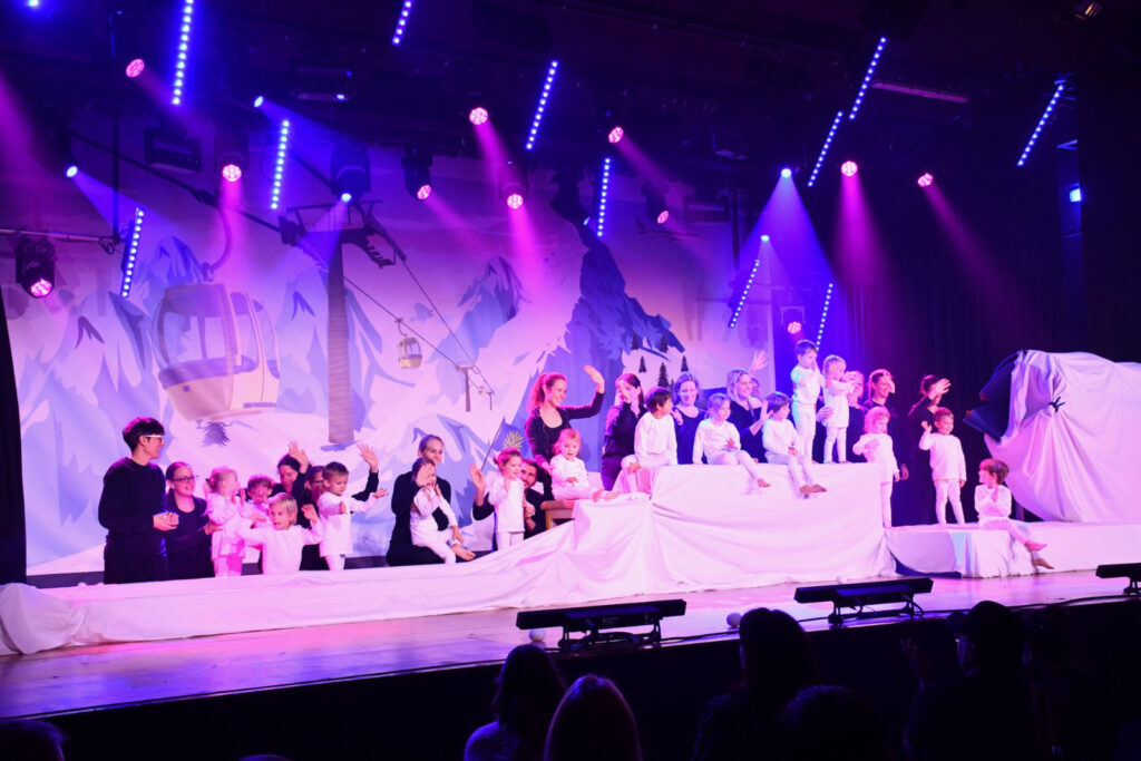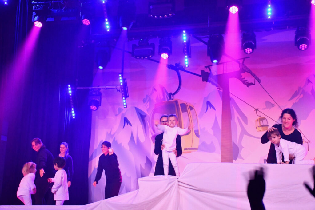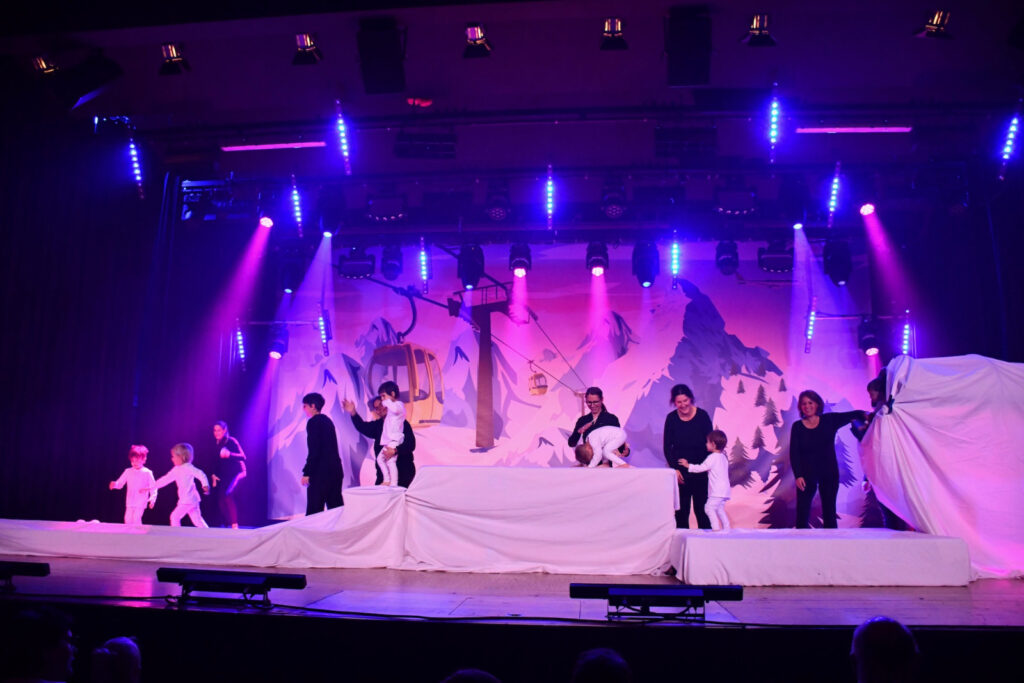 Die kleine und mittlere Mädchenriege nutzte Disneys Frozen als Vorlage für ihren Auftritt. Zu „Let it go“ zeigten die 40 Mädchen ihre Choreographie. Die darauf folgende Zwischennummer spielte vor dem grossen, extra gebauten Chalet. Das Missverständnis um die Ehefrau eines Protagonisten sorgte für einen grossen Lacher.