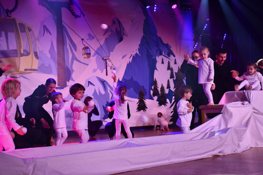 Aus dem Iglu purzelnd und mit fleissig Schneeballen werfen, erfreuten die 2- bis 4-Jährigen das Publikum.
