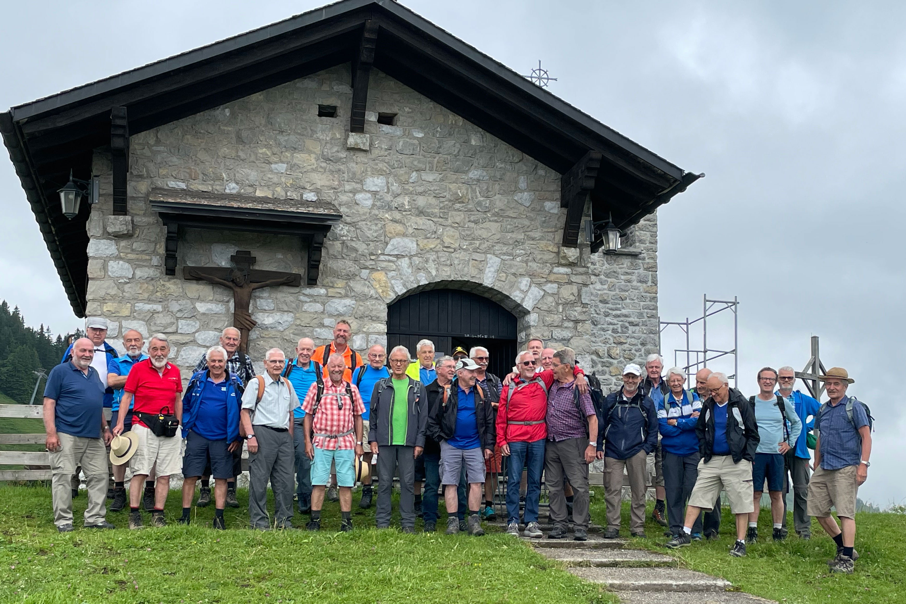 Danach gabs zwei Wander-Möglichkeiten. Die „Sportlichen“ starteten zur gut 2-stündigen Wanderung und die eher „Geniessenden“ die rund 1-stündige Wanderung, final bis zur Apéro-Beiz Klewenstock! Während der „sportlichen-Route“ spendierte Rolf Grubenmann flotterweise einen süffigen Weisswein, welcher das eher garstige Wetter etwas vergessen liess!