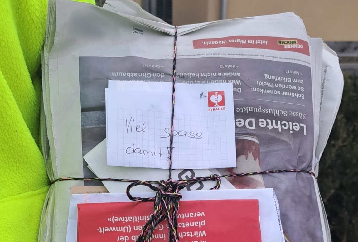 Zwischendurch ging es, je nach Autogrösse mal mehr mal weniger, wieder in die Brunnmatt zurück. Auch die restlichen Dorfbewohner erwachten so langsam und brachten teilweise ihre Bündeli direkt bei uns zum Container. Nach einem kurzen Snack und etwas zu trinken hiess es aber wieder los – schliesslich wollten auch die letzten Bündeli noch eingesammelt werden.