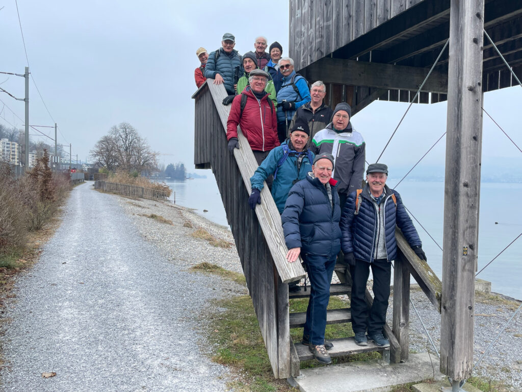 13 kälteresistente Turnveteranen waren an der ersten Tageswanderung im 2025 dabei. Mit der Bahn ging’s über Zug nach Richterswil. Nach dem obligaten Kafe/Gipfele wanderten wir 2 Stunden auf dem Seeuferweg bis zur Halbinsel Au.