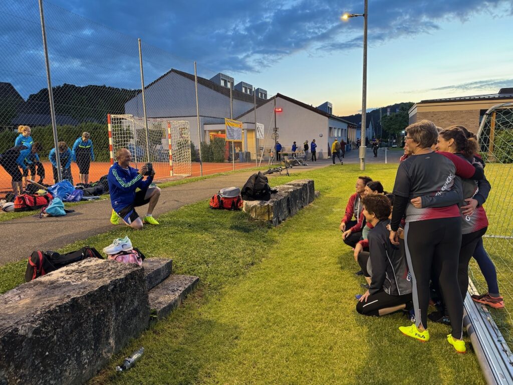 Nach einer halben Stunde folgte der zweite Wettkampfteil und um 21 Uhr der letzte. Kaum war die Sonne ganz verschwunden, kühlte es merklich ab. Auch der Rasen war feuchter und so waren die letzten Runden dann herausfordernder. Aber der Duft vom nahen Grill 🥩liess alle motiviert den Wettkampf beenden.