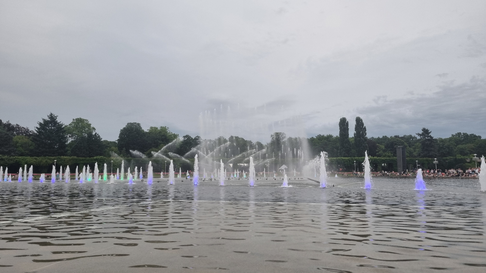 Los gings also zum ersten Geheimtipp, die Pierogarnia am Marktplatz. Pierogi (eine polnische Spezialität, eine Art Dumplings) werden gedampft, frittiert oder gebacken gegessen. Wir können alle Arten und Füllungen sehr empfehlen – nur zu den süssen Pierogi können wir leider keine Aussage treffen, für die blieb keine Zeit. Auf uns warteten Wasserspiele am anderen Ende der Stadt. Nach einer Runde Speed-Walking waren dann doch auch die Letzten damit einverstanden, für die restliche Strecke das Tram zu nehmen, da sonst die erste Show verpasst werden würde. Die Zeit wurde eingehalten, die Musik und das Wasser top, doch um 8 Uhr war es definitiv noch zu hell für die Wasserspiele. Also gab es einen Spaziergang ums Gelände und eine Runde Kartenspiele bevor es dann eine Stunde später auch mit der Beleuchtung klappte. Wir wollten dann eigentlich zurück in die Stadt, doch die Vorahnung von TikToks und das Warten der Einheimischen liess uns zu den Kartenspielen zurückkehren und so durften wir eine halbe Stunde später noch einen polnischen Disneyzusammenschnitt geniessen. Schön anzusehen war es auch so!
