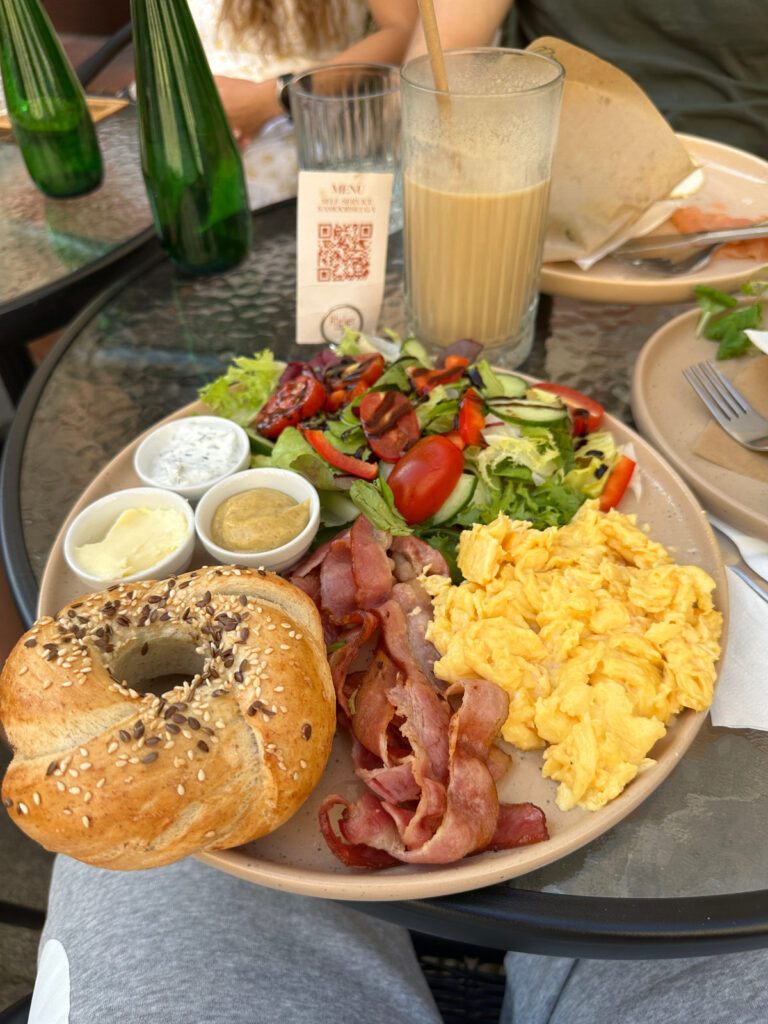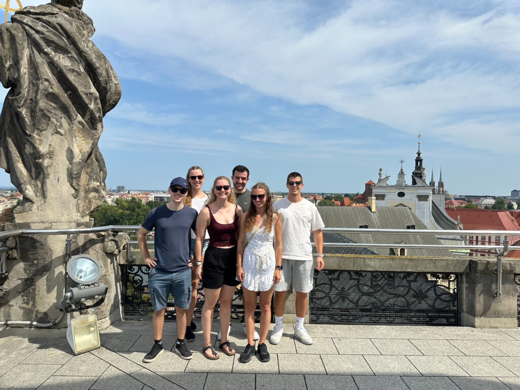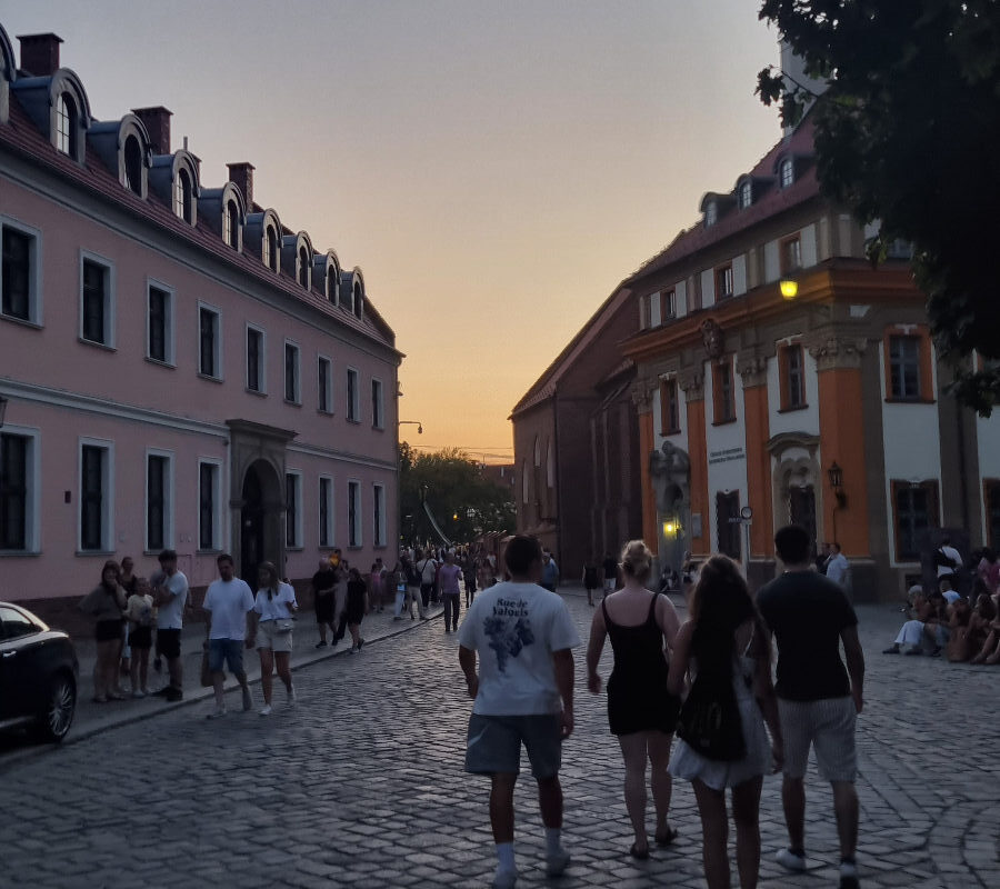 Samstag – Zeit die Stadt zu erkunden. Dank TikTok gabs ein wunderschönes (und zum Glück auch sehr feines) Frühstück zur Stärkung, bevor wir durch den Park spazierten. Von vielen Zwergenstopps begleitet erkundeten wir Wrocław und brachten unsere Schrittzähler auf Touren. Nach dem Besuch der Universität und der wunderschönen Aula Leopoldina genossen wir ein Zmittag/Zvieri auf einem schwimmenden Restaurant. Zurück ging es dann via Markthalle und Künstlergasse. Leider war das empfohlene koreanische Restaurant schon voll – also ab ins Steakhouse. Doch auch heute wurde es nichts mit Dessert, der Zündifritz wartete auf uns. Schnell auf die Dominsel – ein ebenfalls sehr schönes Plätzchen – und mit allen anderen Touristen auf den Laternenanzünder warten. Klingt langweilig? Ist es irgendwie auch. Aber gleichzeitig auch eine schöne Tradition, die aufrecht erhalten wird. Zusammen mit dem Sonnenuntergang war die Stimmung dann perfekt. Oder zusammenfassend: 👍