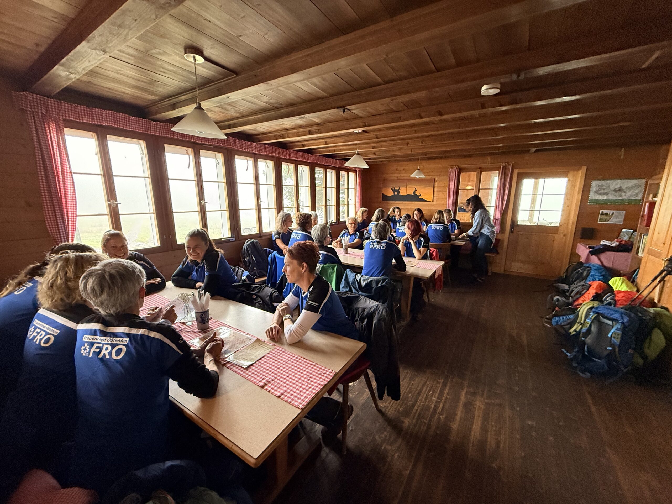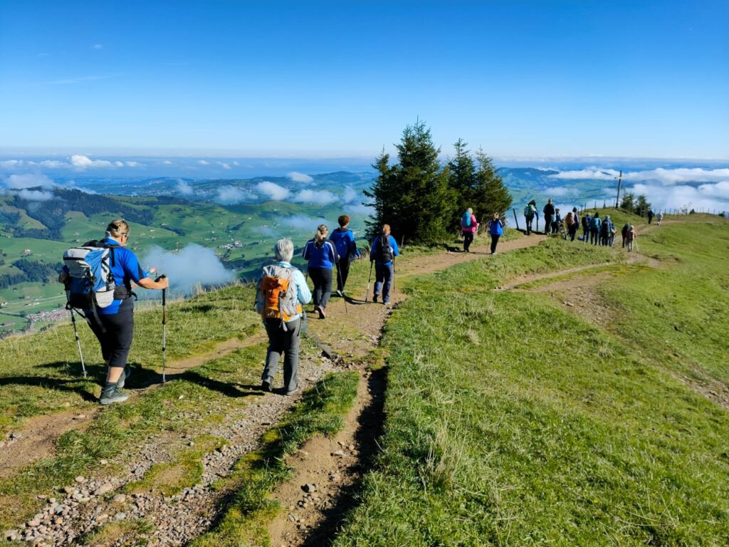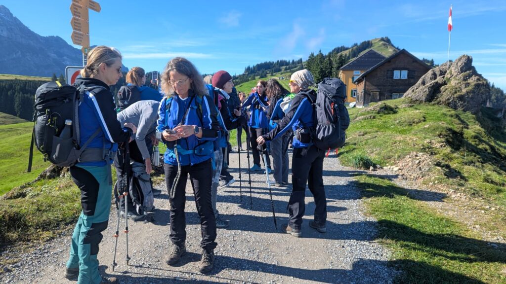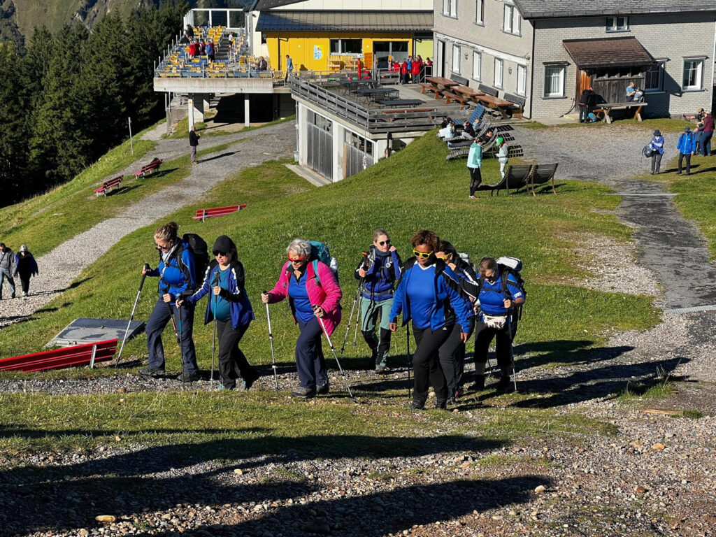 Am Samstagmorgen um 07.00 Uhr startete unsere Abenteuerreise mit dem Bus Richtung Affoltern. Von Station zu Station, stiegen immer mehr blau gekleidete Frauen dazu und auch die Jugi-Buebe hatten noch in unserem Bus Platz, die ebenfalls auf ihre Reise gingen. Die Letzten kamen dann noch in Affoltern dazu, nun waren wir komplett. Es war sogar noch genügend Zeit, um die nachträglich gebrachten Wanderschuhe zu wechseln, dank eines netten Ehegatten.
