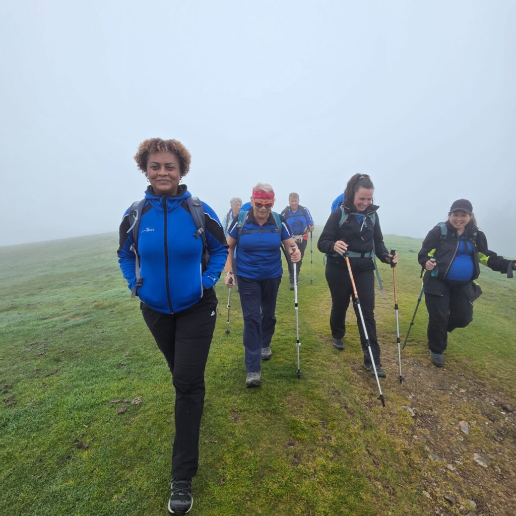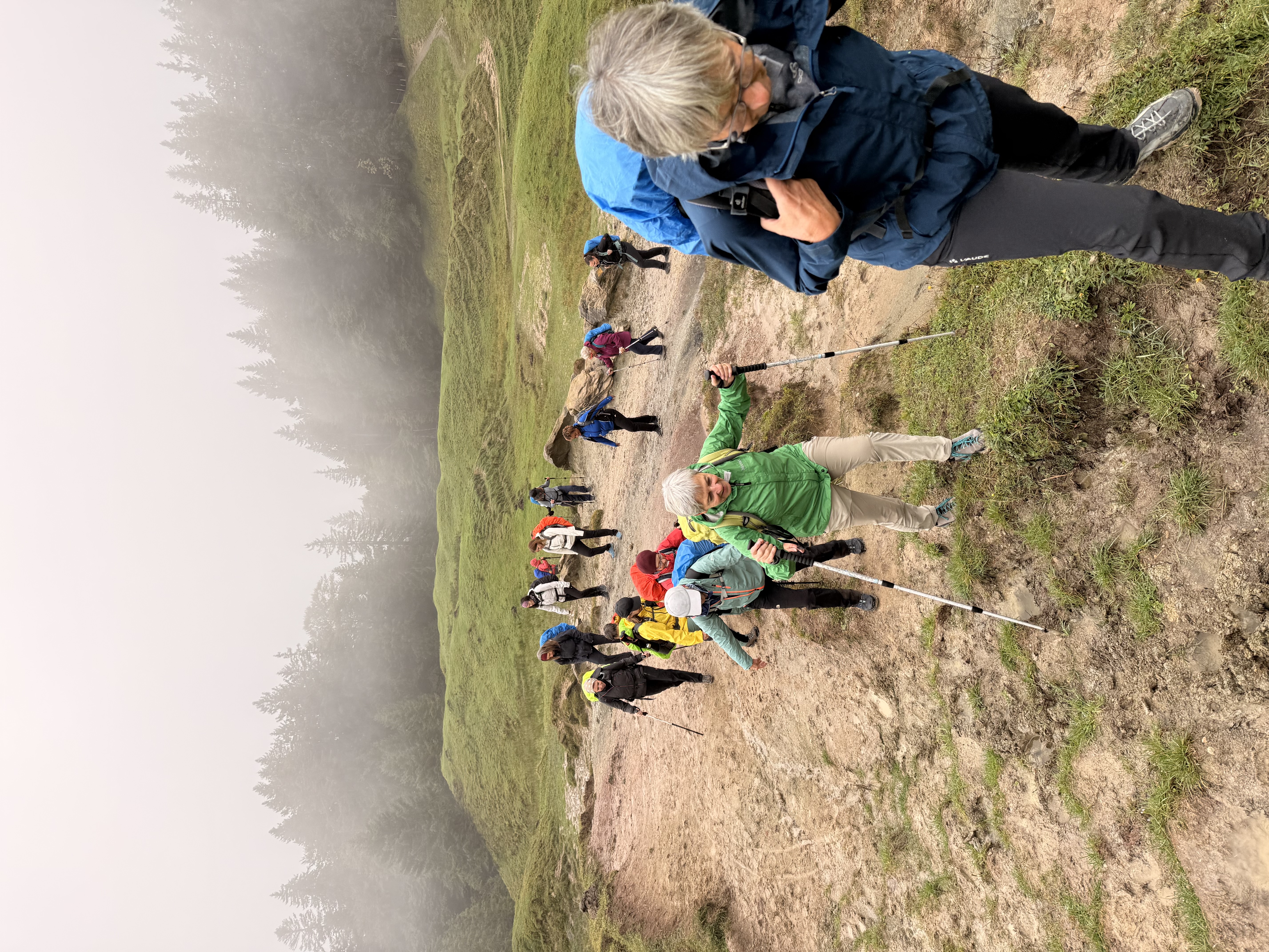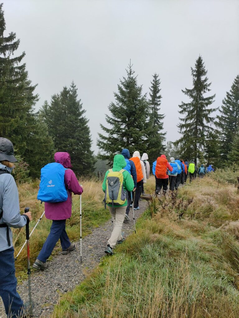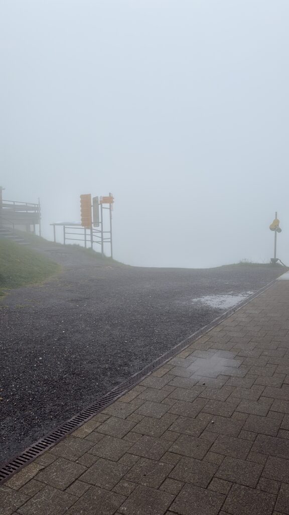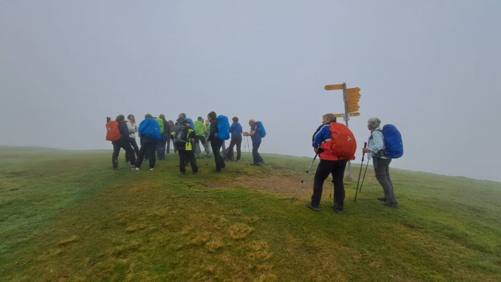 Nach dieser spontanen und gelungenen Pause machten wir uns dann doch auf den Weg, denn es lagen noch einige Höhenmeter vor uns. Nach einiger Wanderzeit wurde es allerdings immer etwas ruhiger, da es über längere Zeit ziemlich bergauf ging, bis auf ein paar Ausnahmen, ja auch hoch Schwangere können einfach immer weitersprechen, das ist ein Phänomen, wo sie wohl die Luft hernahm? 3 Stunden später und ohne Bergrettung, haben wir es dann geschafft und sind an unserem Ziel, dem Kronberg angekommen. Die Sicht, es gab keine Sicht, aber es hat sich bestimmt gelohnt hier oben anzukommen, dachten wir.