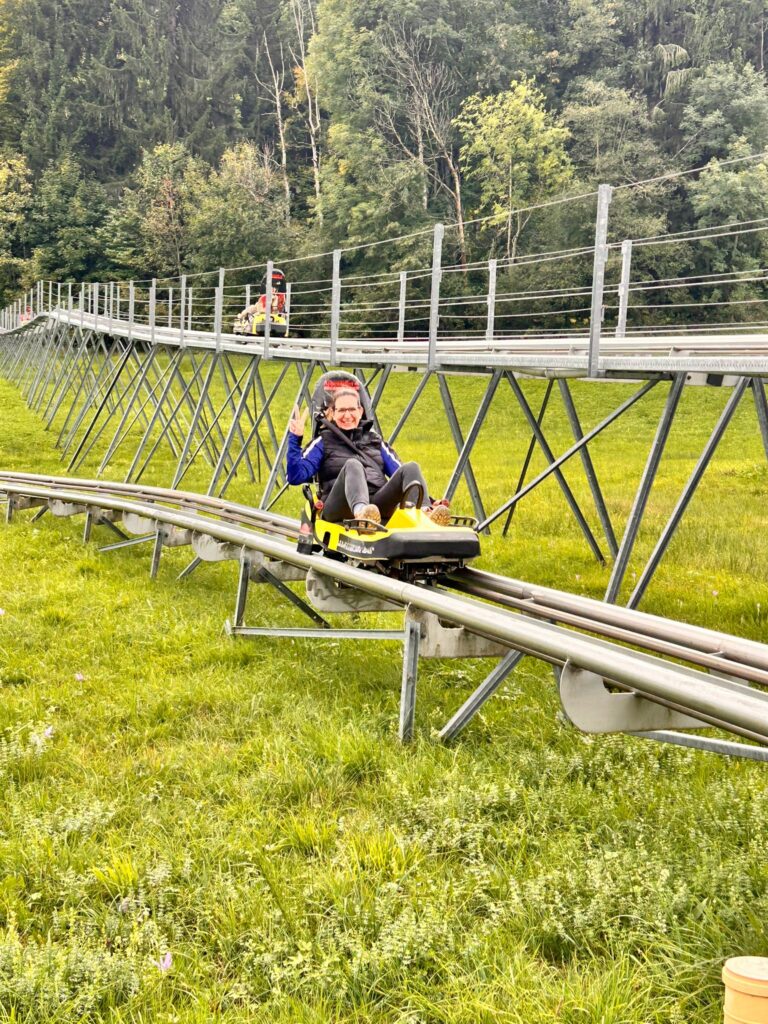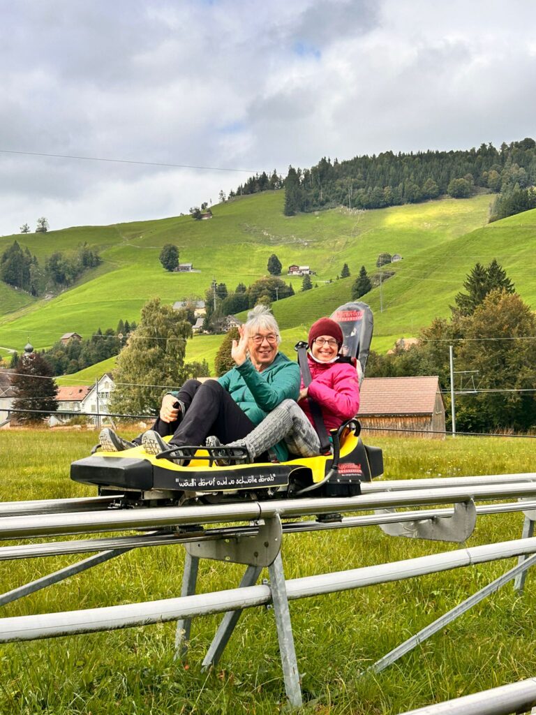 Bei der Talstation trafen sich dann wieder alle zu einem gemeinsamen Spaghetti-Plausch, auch der war sehr gut. Nun hatten wir noch etwas Zeit zur Verfügung, bis wir wieder auf den nach Hauseweg mussten. Die einen hatten sehr viel Spass auf der Rodelbahn, andere sind sich die Füsse waschen gegangen auf dem Barfuss-Weg und die gemütliche Truppe genoss einen Kaffee bei guten Gesprächen.