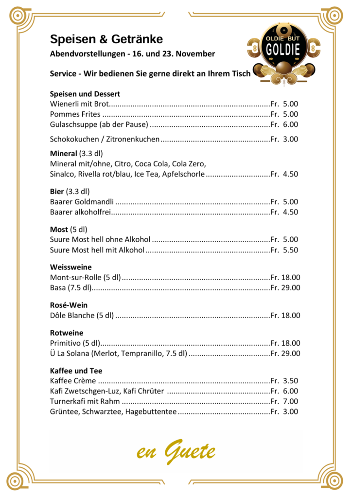 Chränzli 2024: Speisen und Getränke