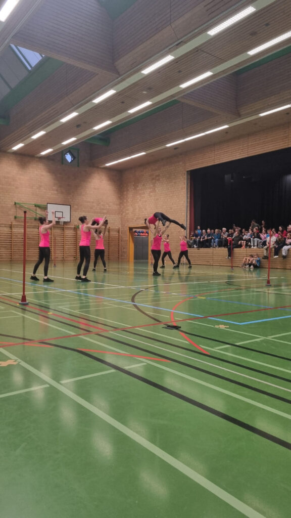 Team-Aerobic? Das ist eine Mischung aus Tanzen, Kraft, Gleichgewicht, Akrobatik, Geschicklichkeit und Koordination von Armen und Beinen. Wir powern uns aus und haben immer Spass im Training. Wir trainieren jeweils am Mittwoch von 20:15 Uhr bis 22:00 Uhr. Möchtest du auch dabei sein? Dann komm doch einfach mal vorbei und schaus dir an, Vorkenntnisse sind keine nötig.